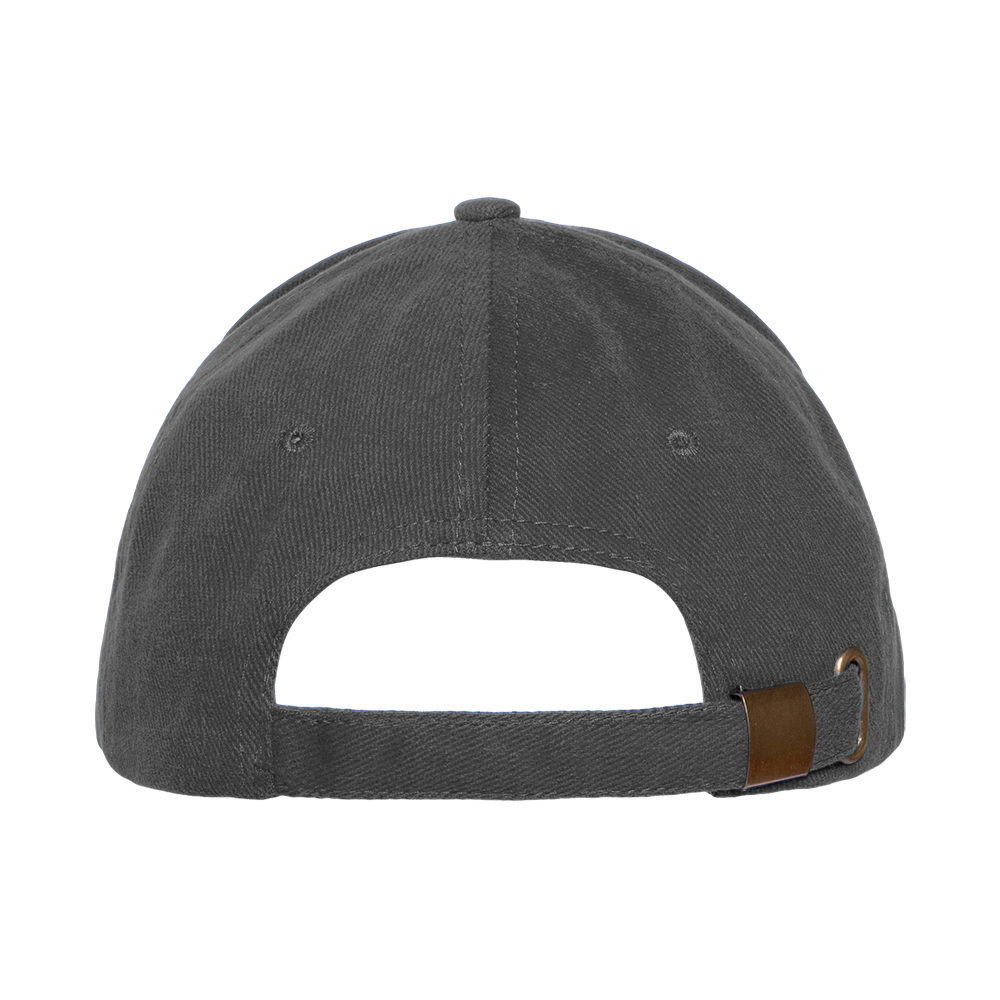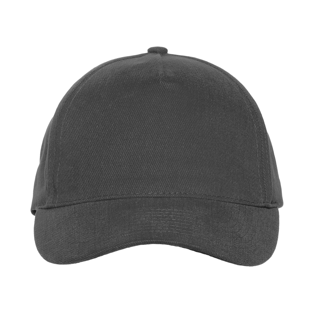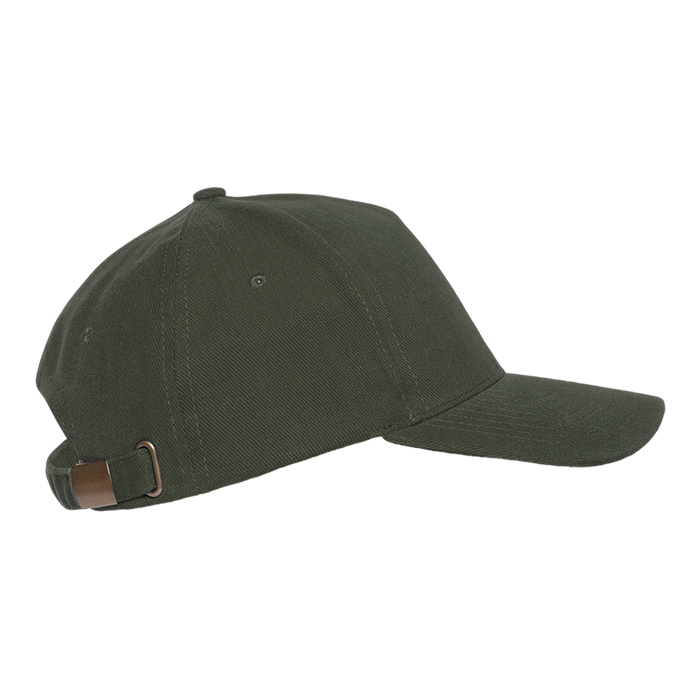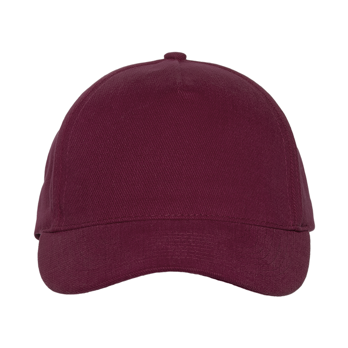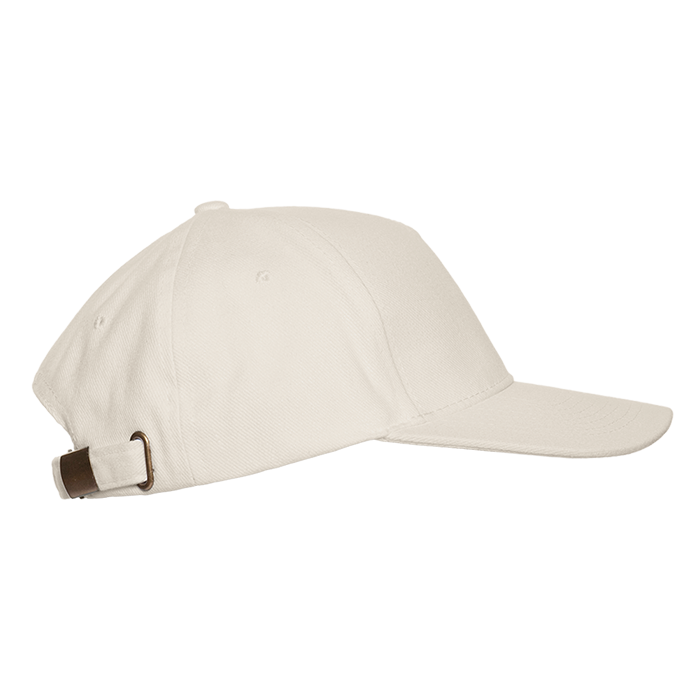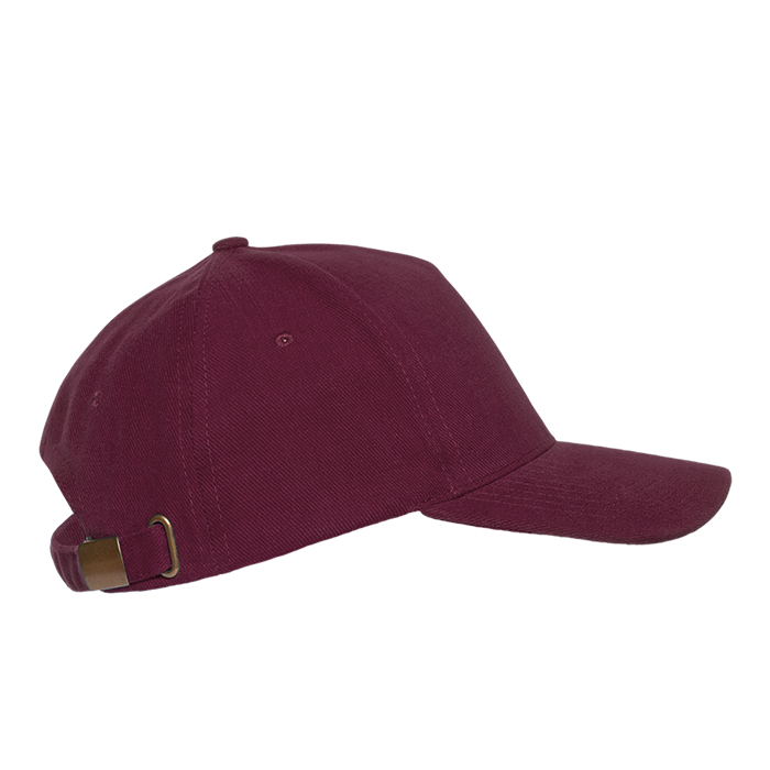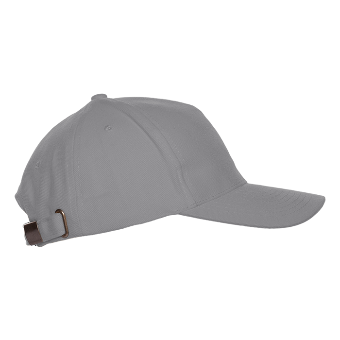 Бейсболка-пятиклинка без лобового шва с изогнутым жестким козырьком. Посадка регулируется ремешком на металлической застежке.