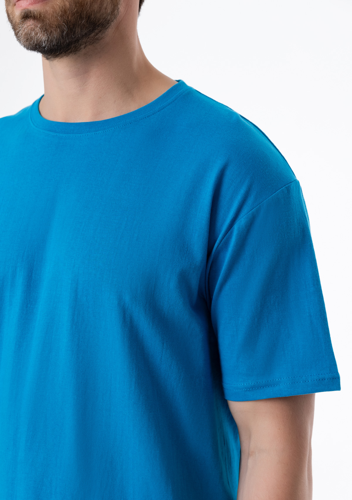 Футболка выполнена из гладкого трикотажного полотна – кулирная гладь. Материал обладает хорошей эластичностью и прочностью, отлично пропускает воздух и впитывает влагу.