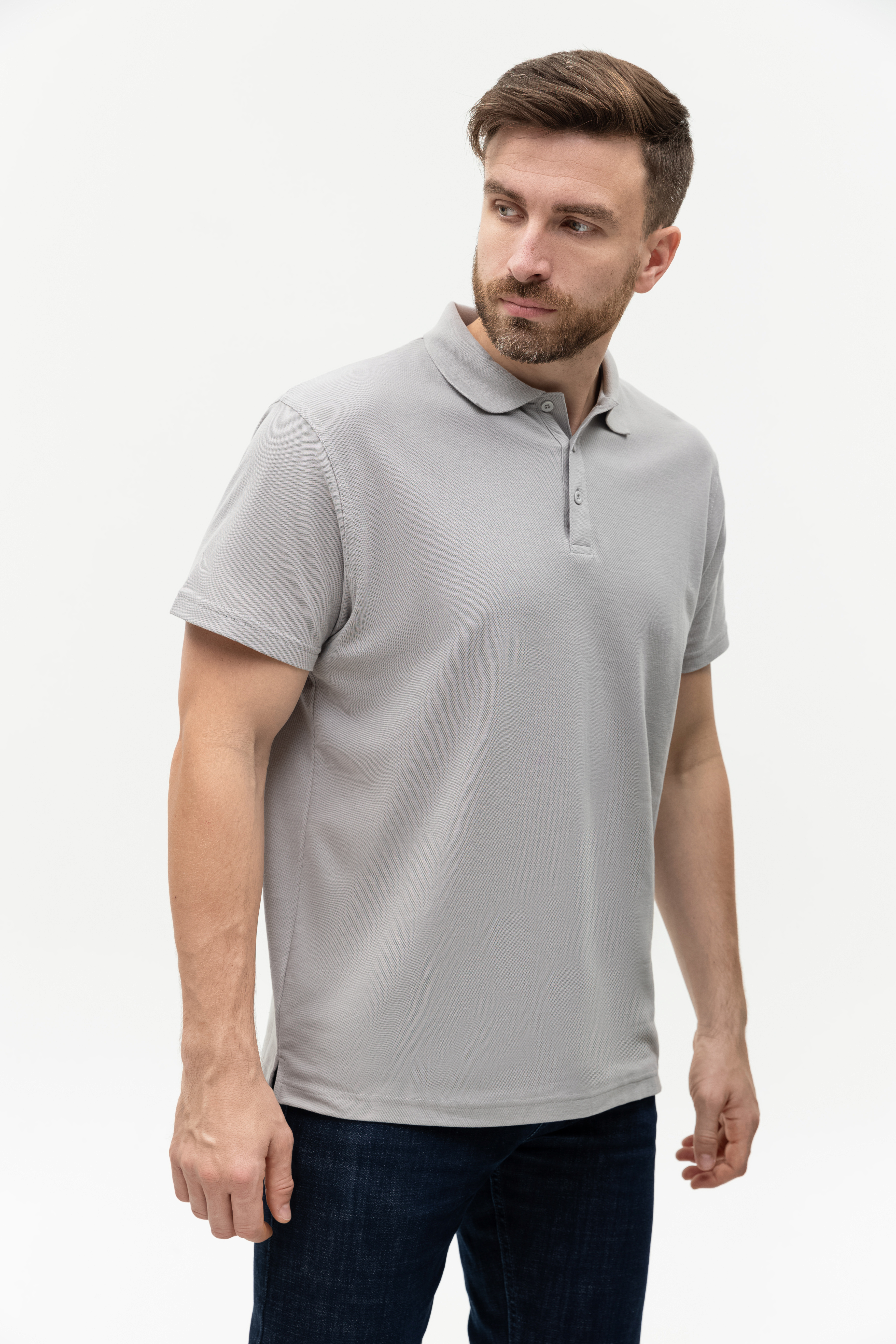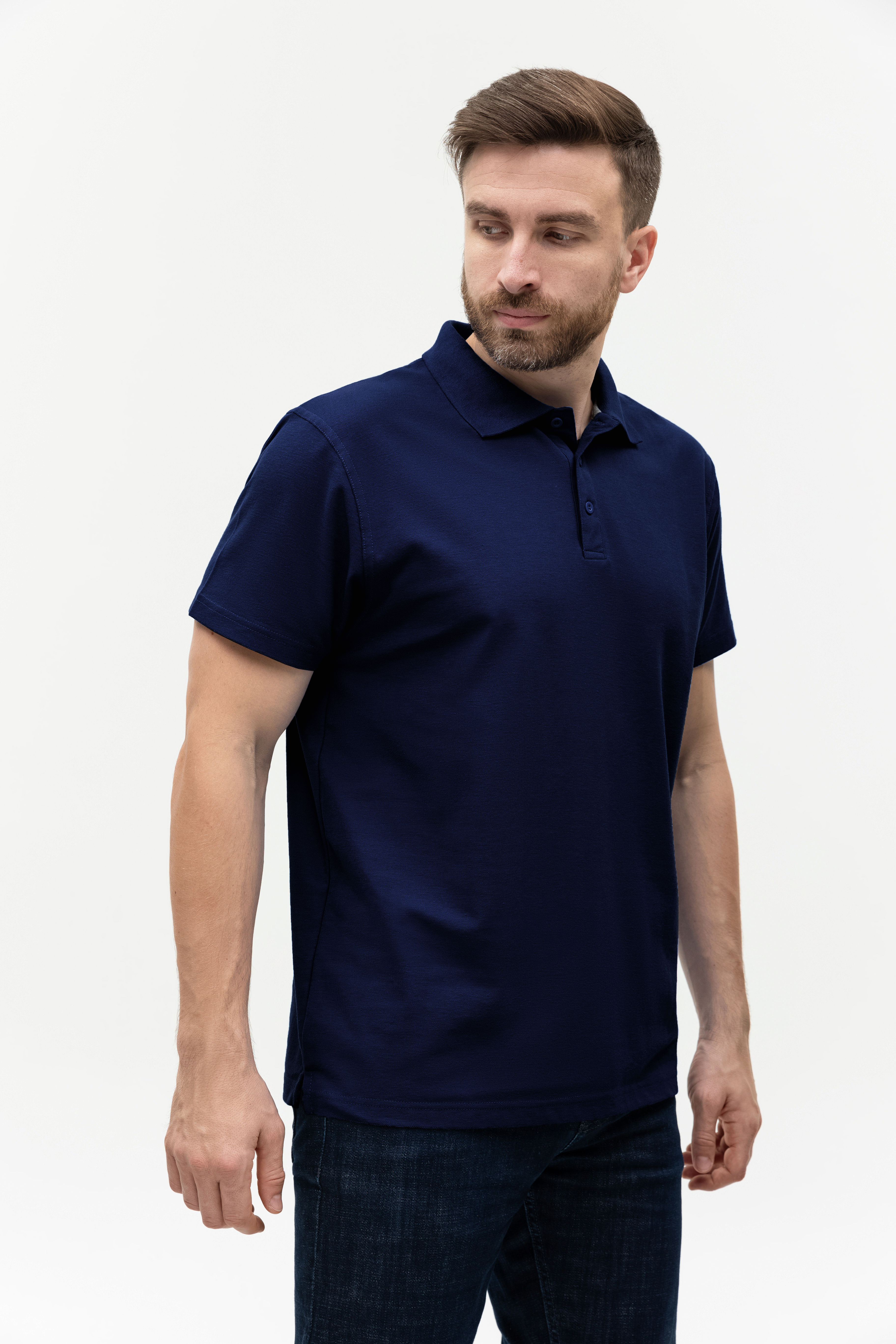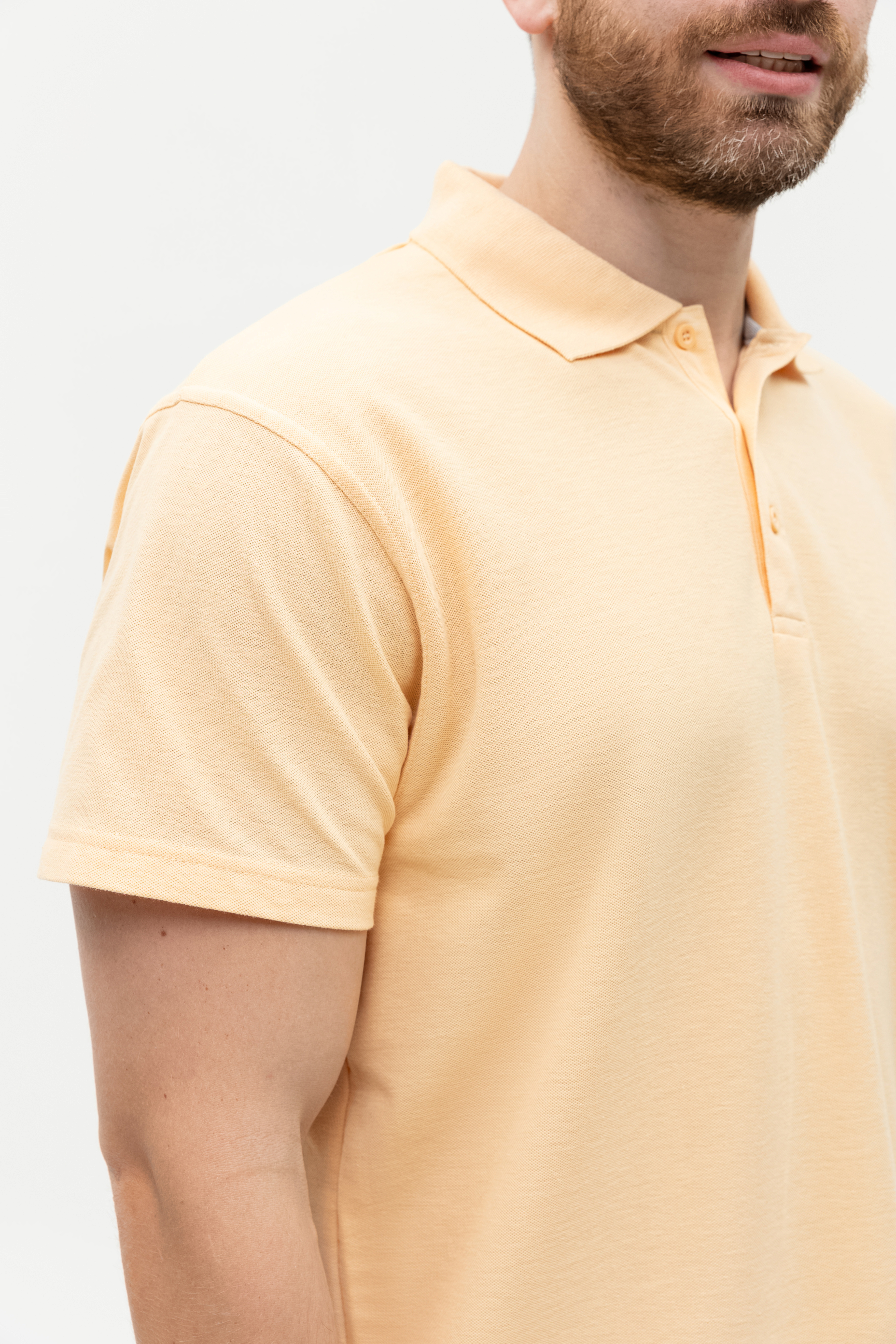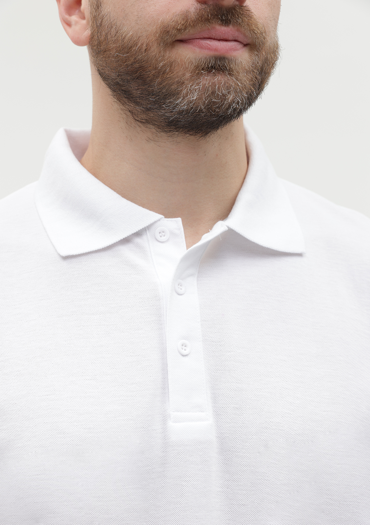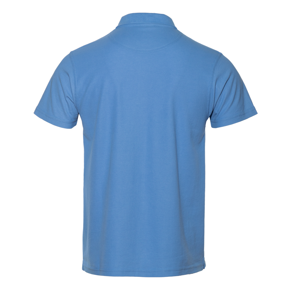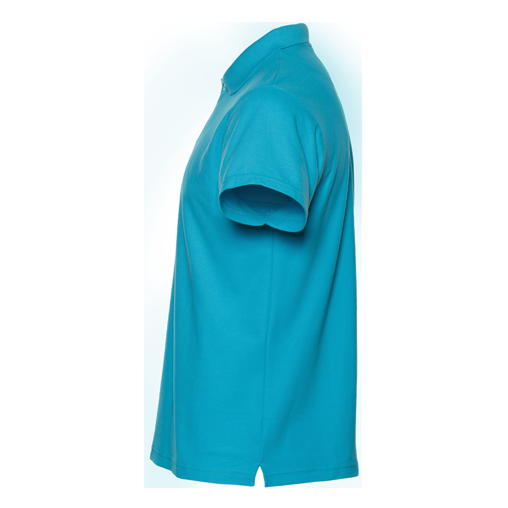 Поло выполнено из фактурной смесового ткани (65% хлопок, 35% полиэстер), благодаря чему изделие хорошо пропускает воздух и практически не мнется.