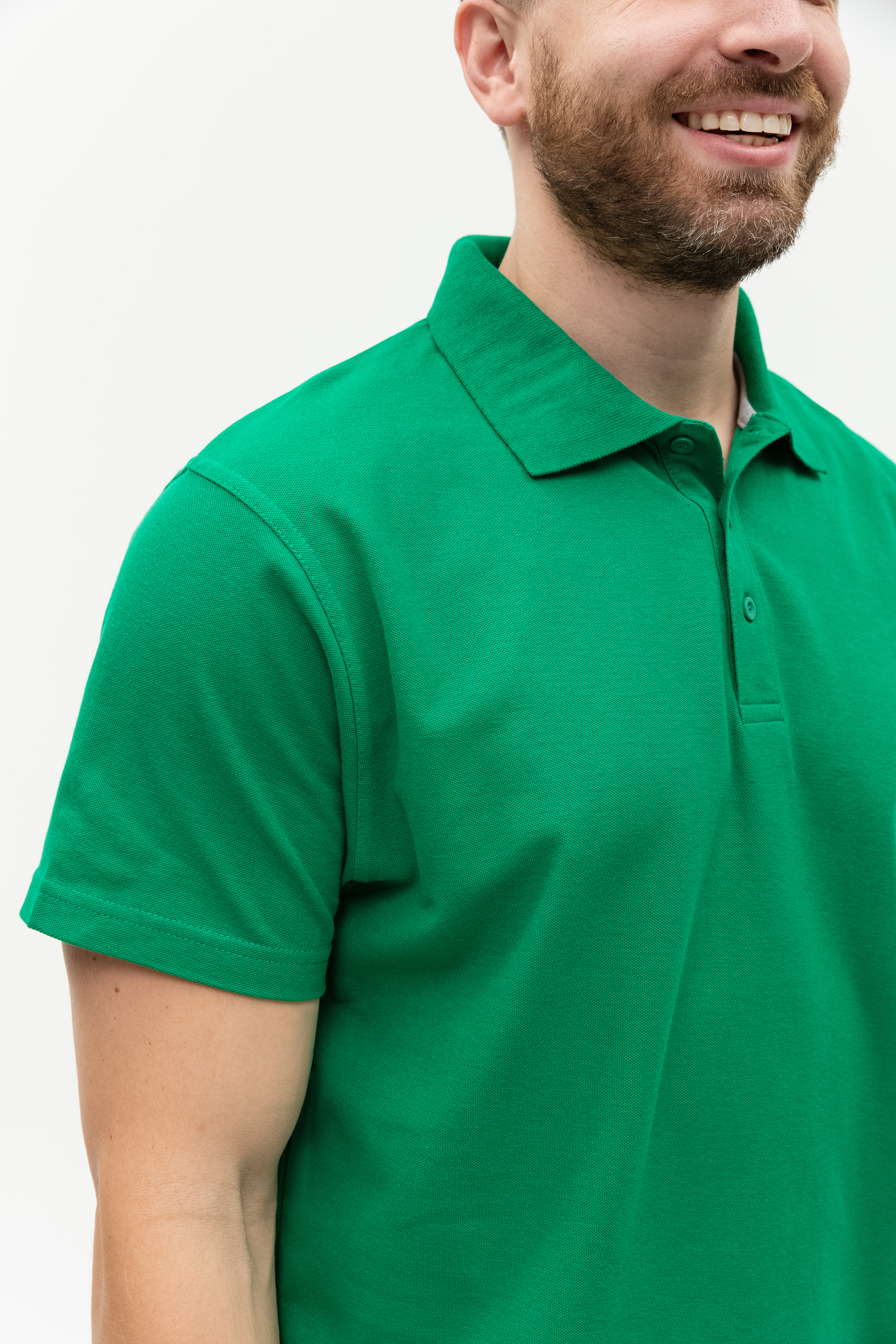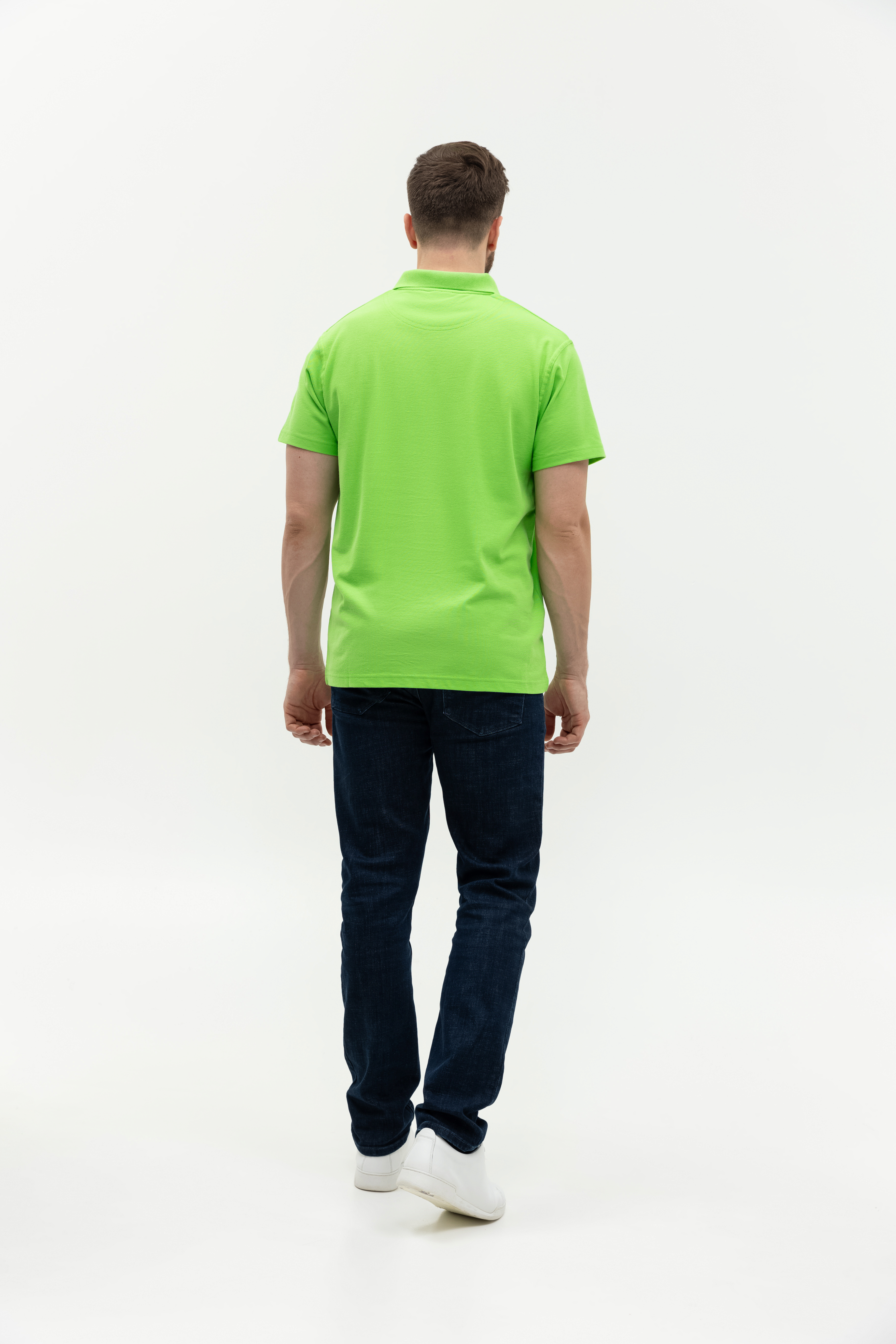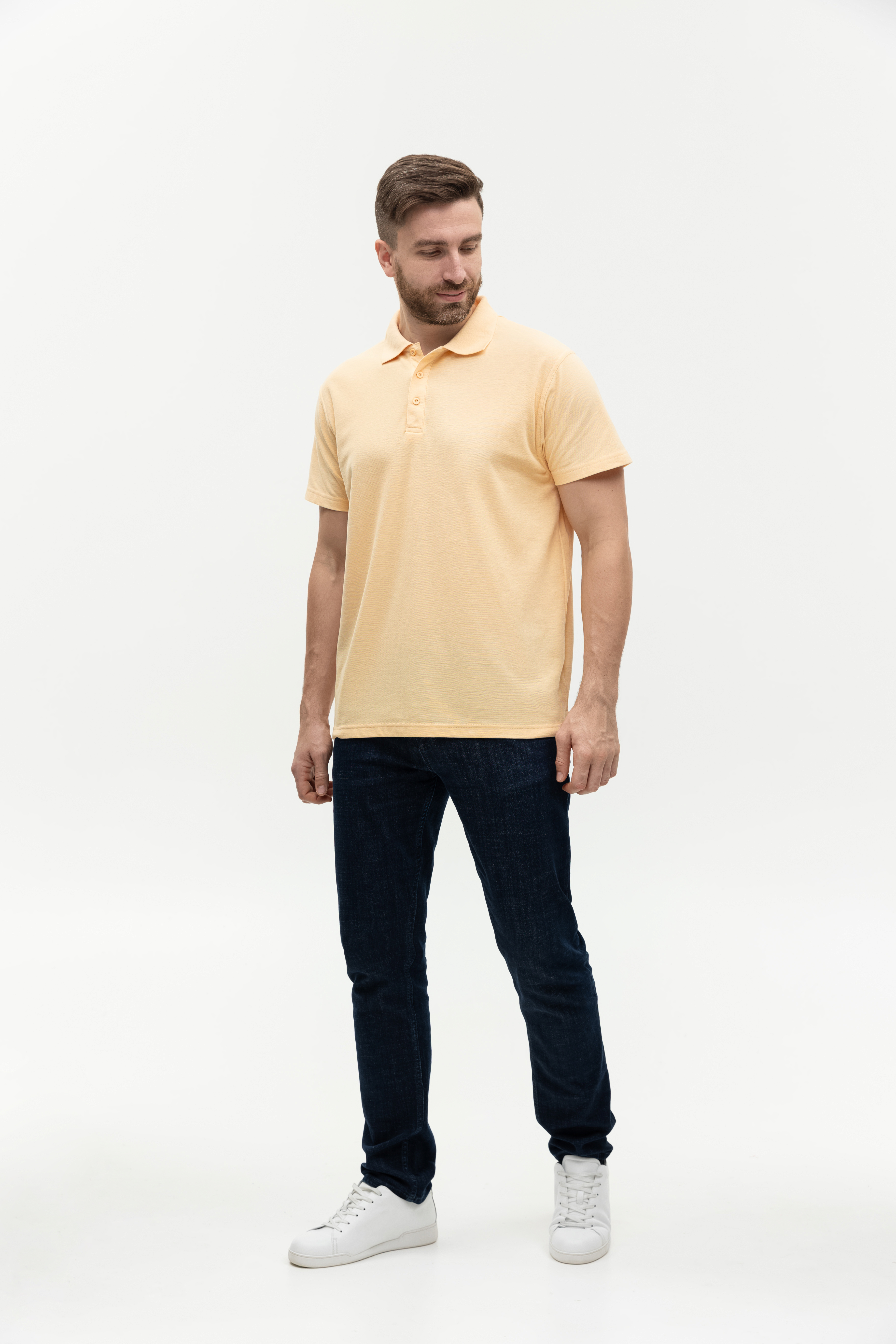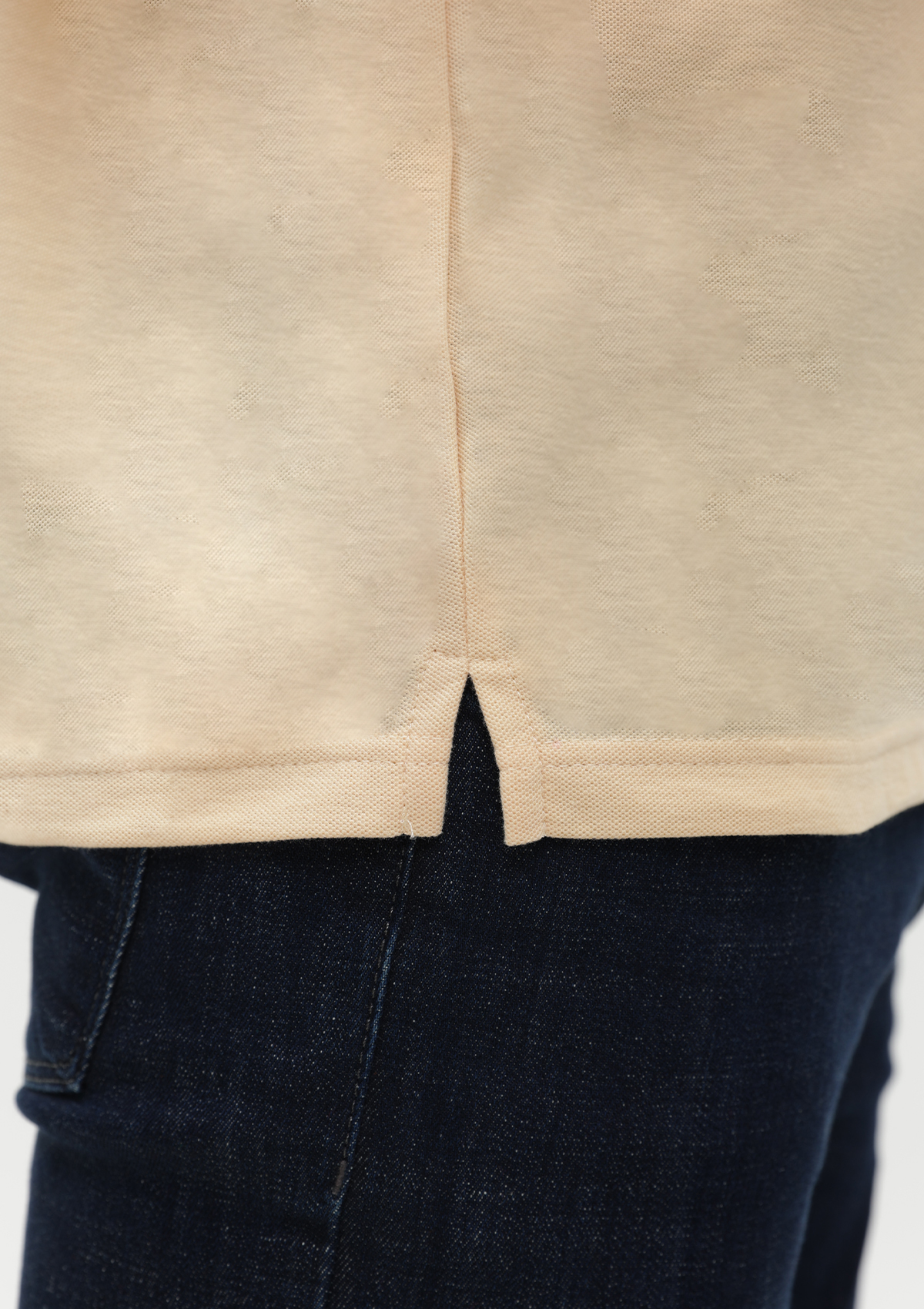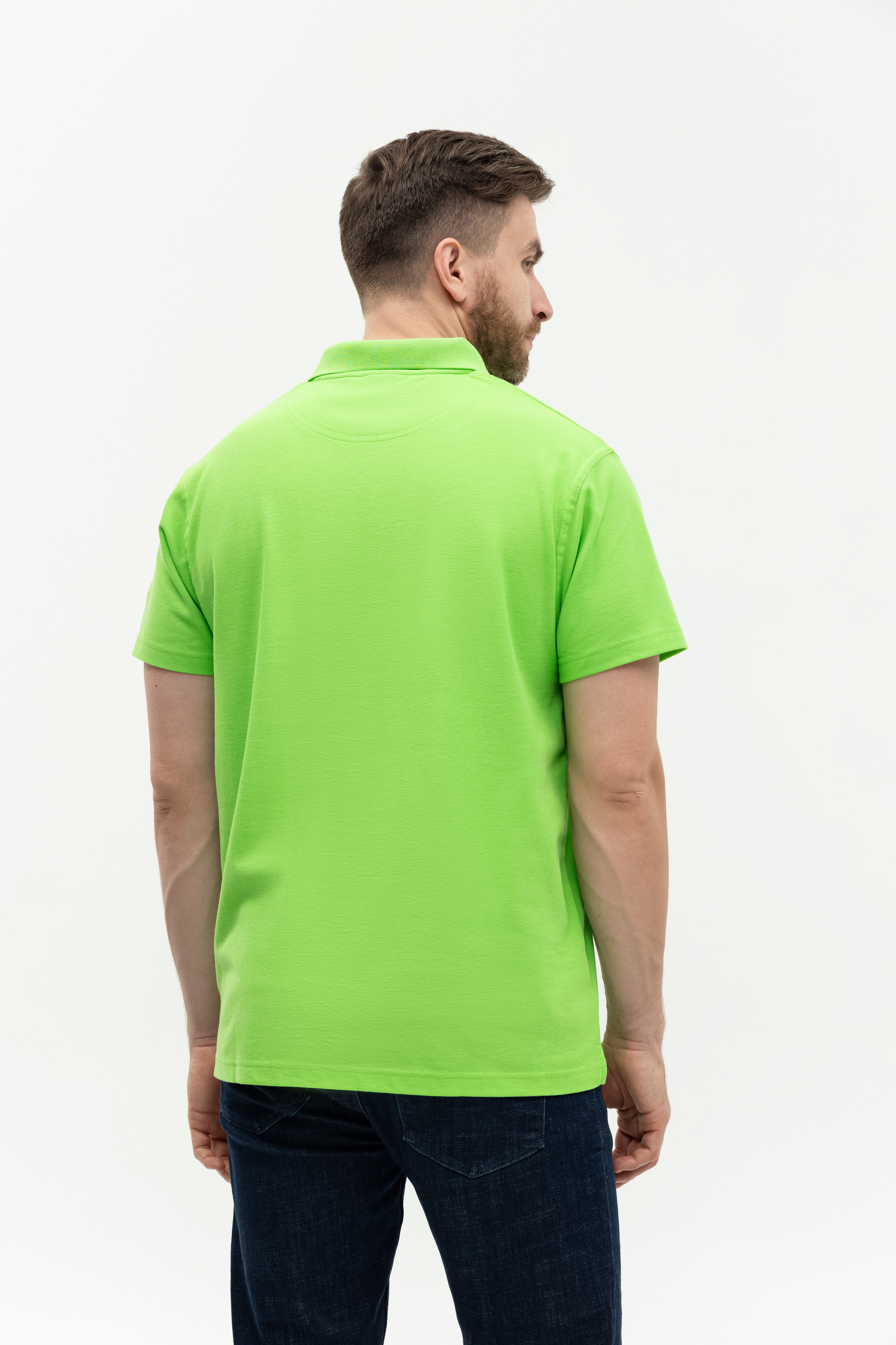 Поло выполнено из фактурной смесового ткани (65% хлопок, 35% полиэстер), благодаря чему изделие хорошо пропускает воздух и практически не мнется.