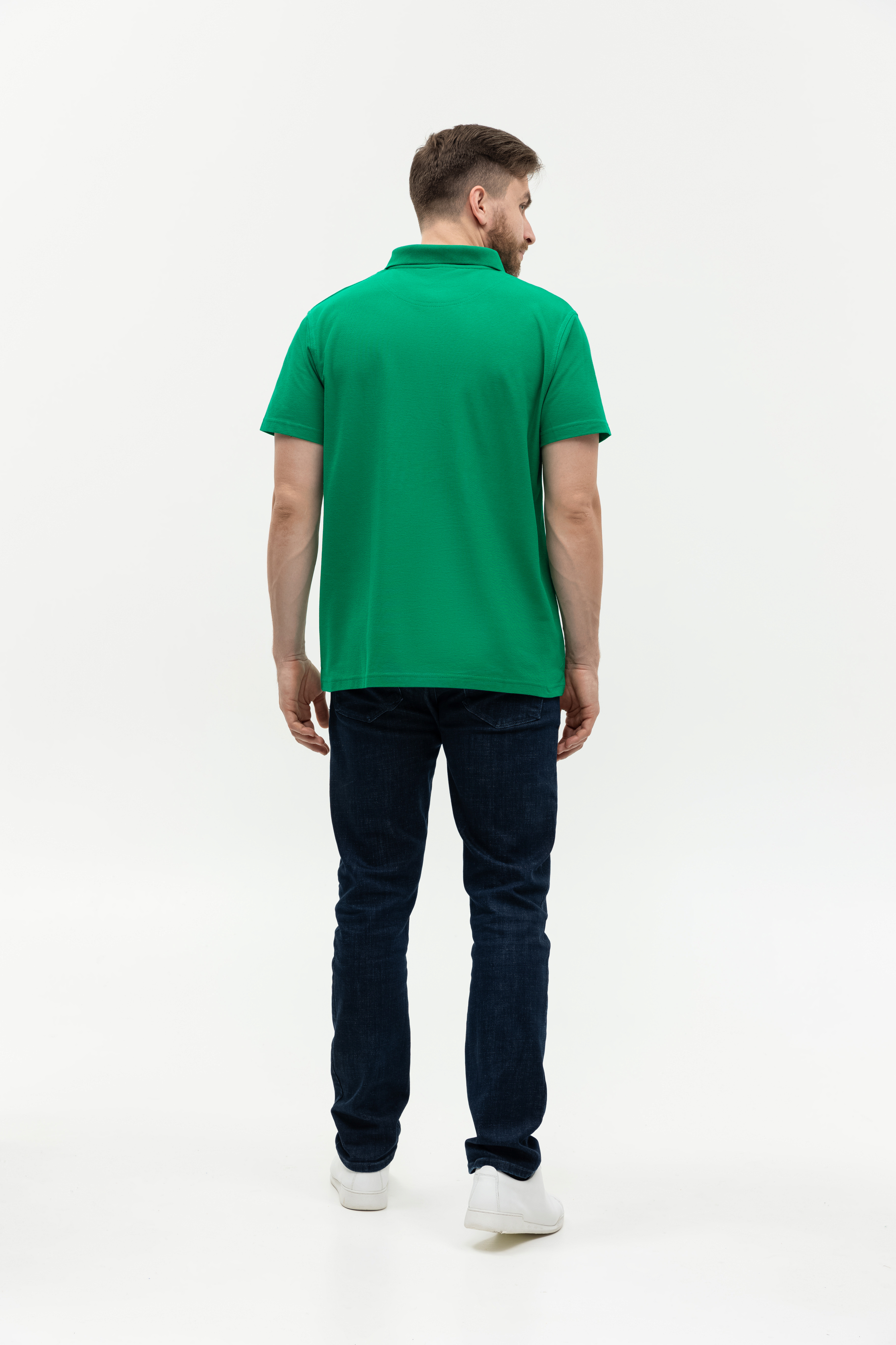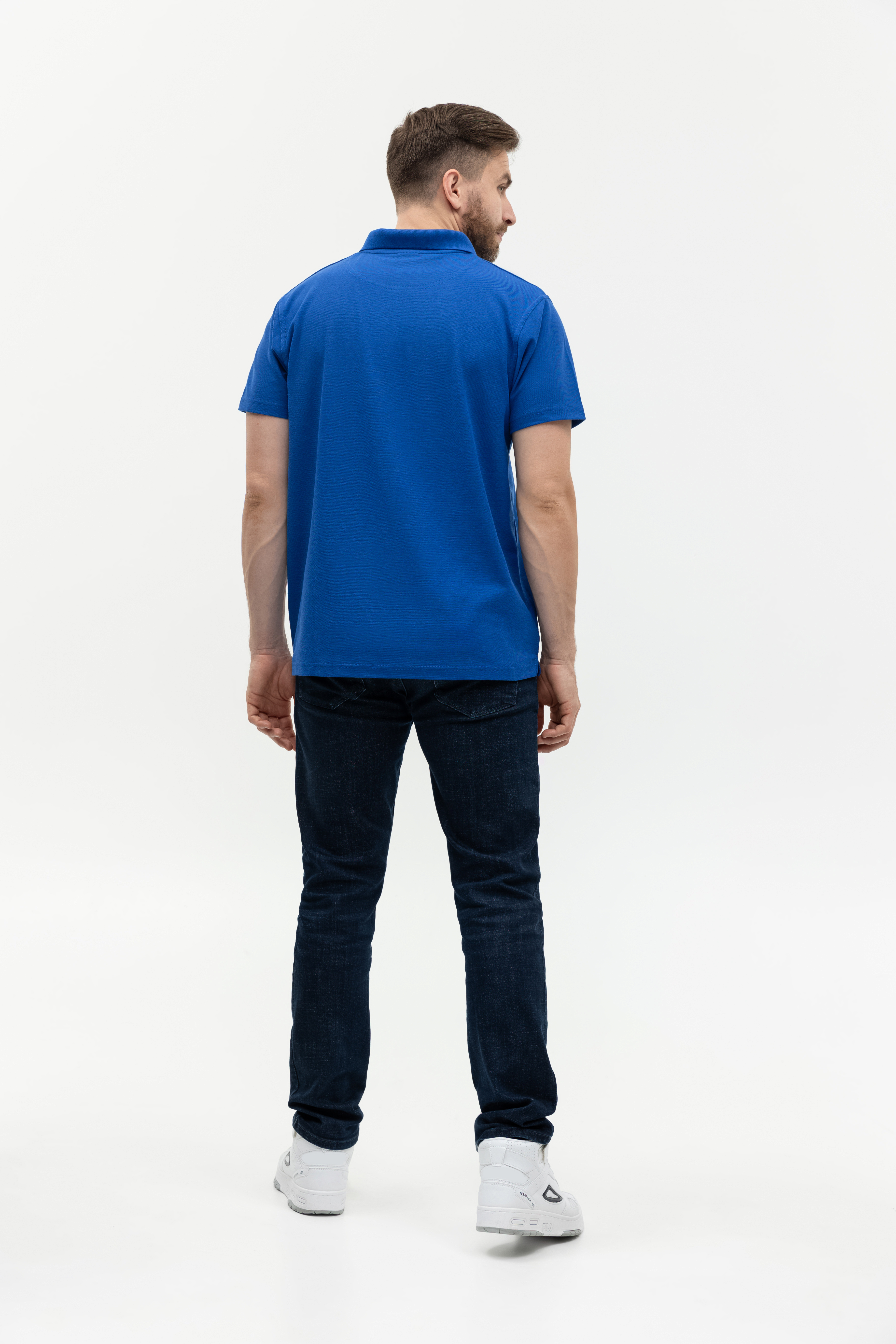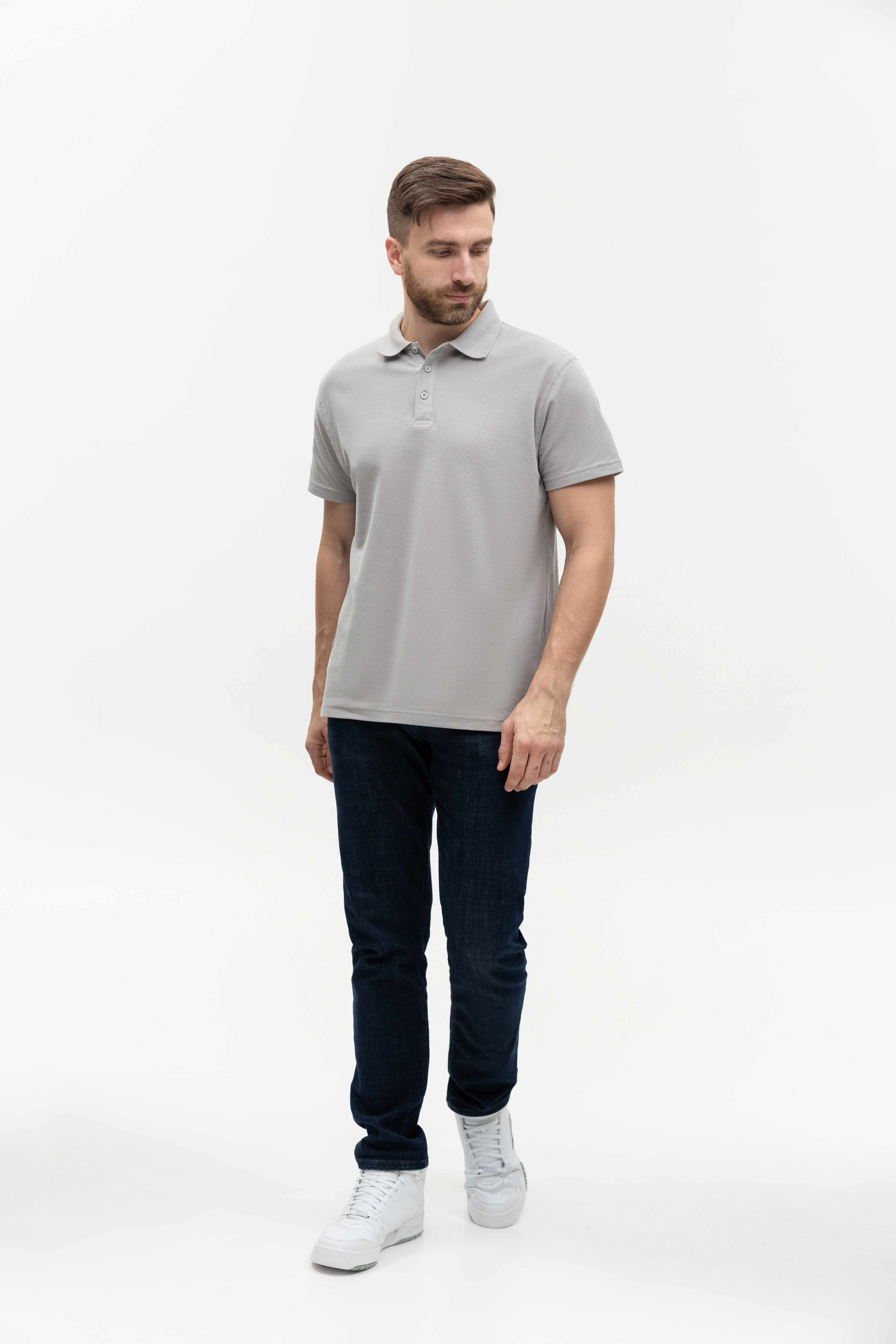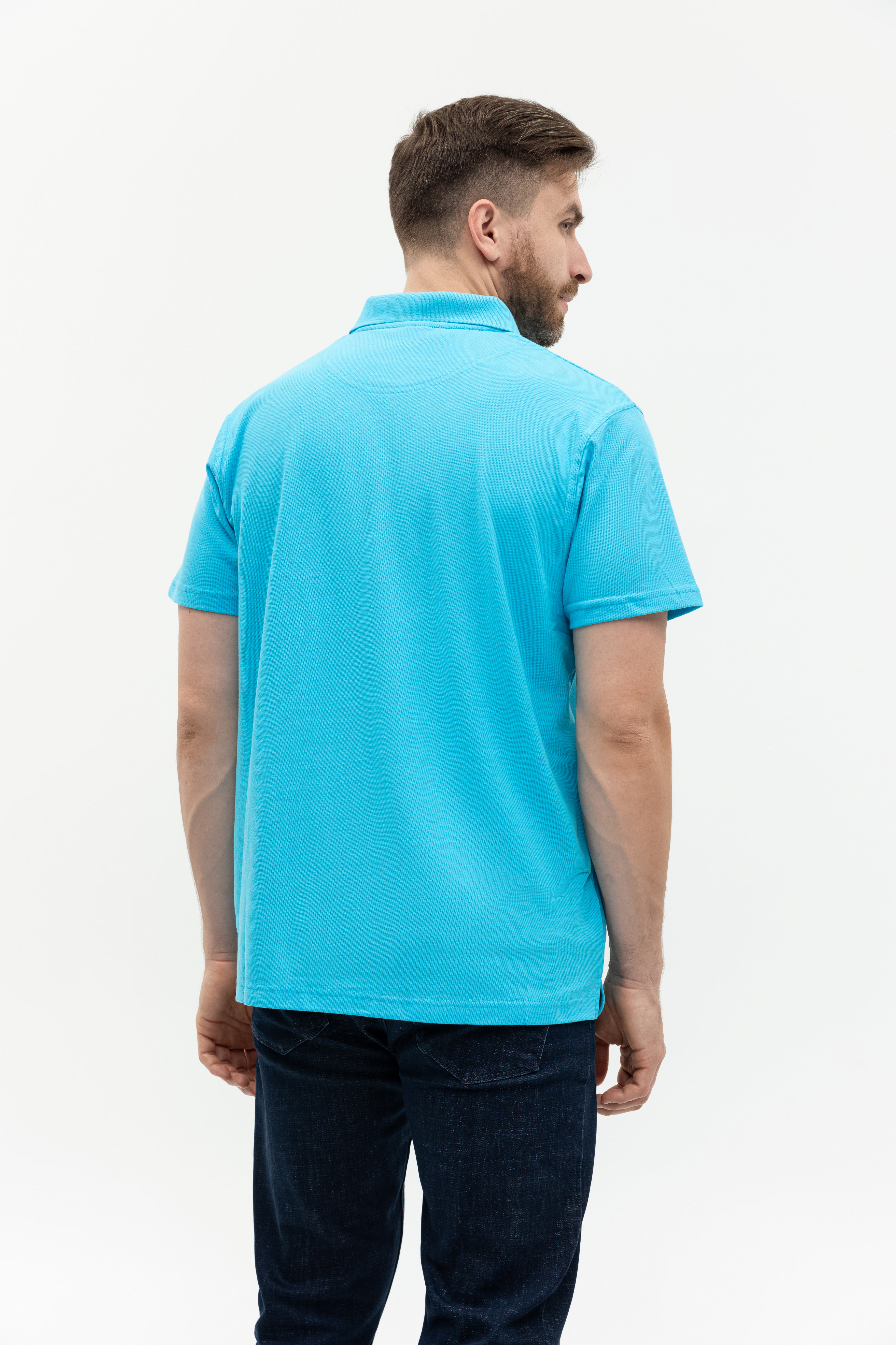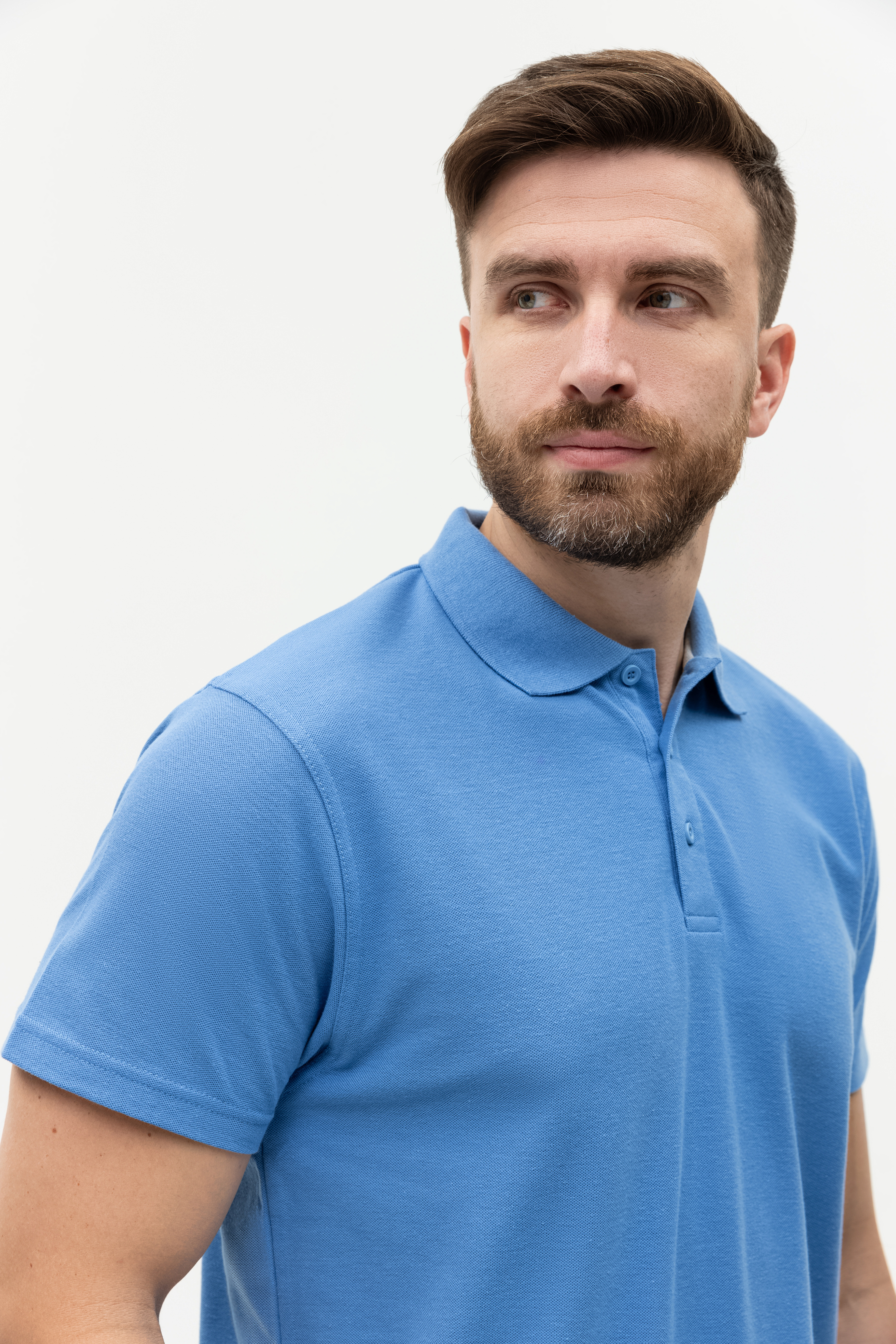 Поло выполнено из фактурной смесового ткани (65% хлопок, 35% полиэстер), благодаря чему изделие хорошо пропускает воздух и практически не мнется.