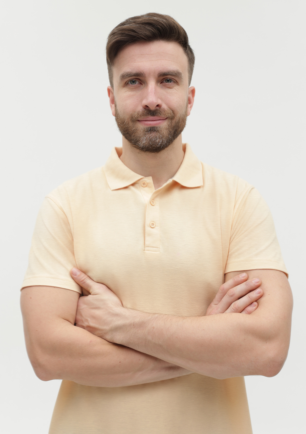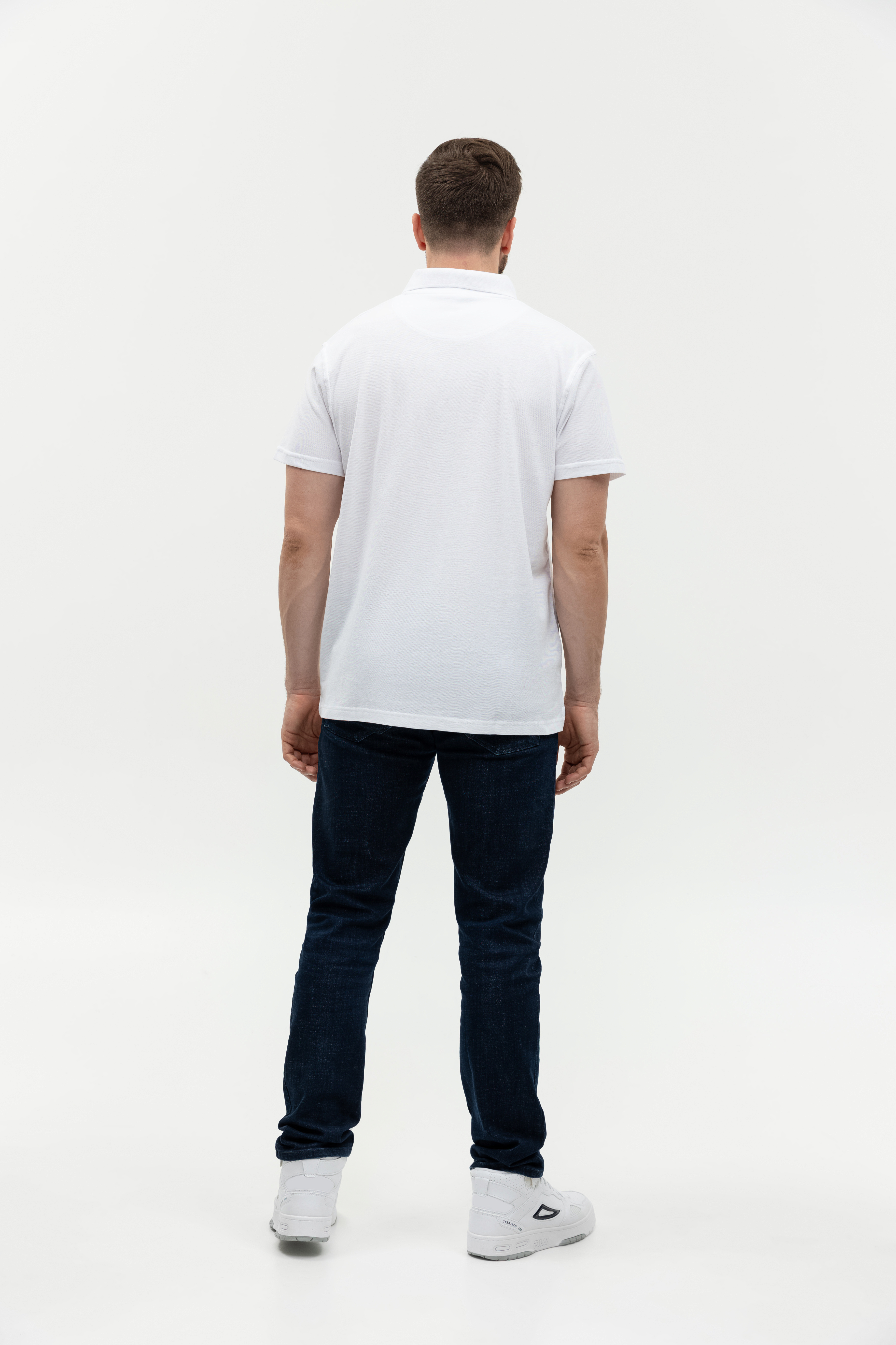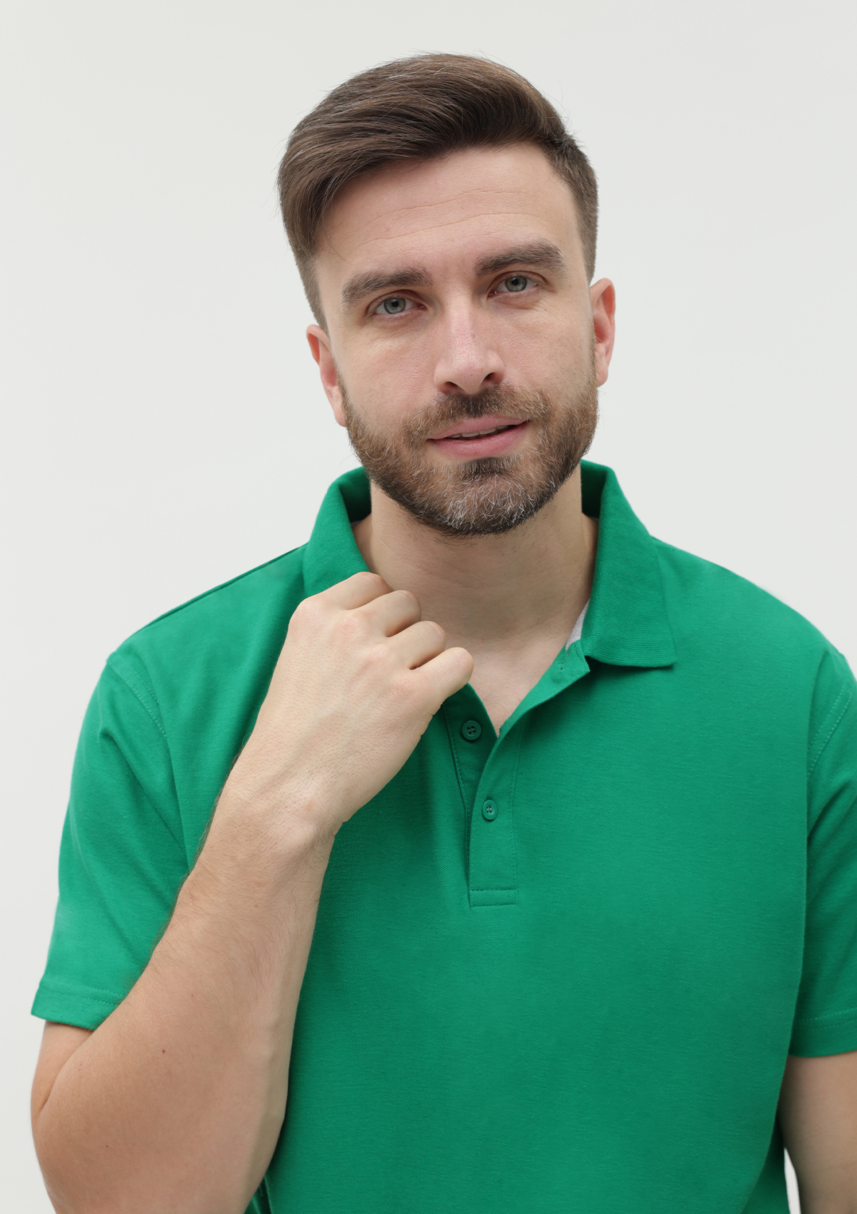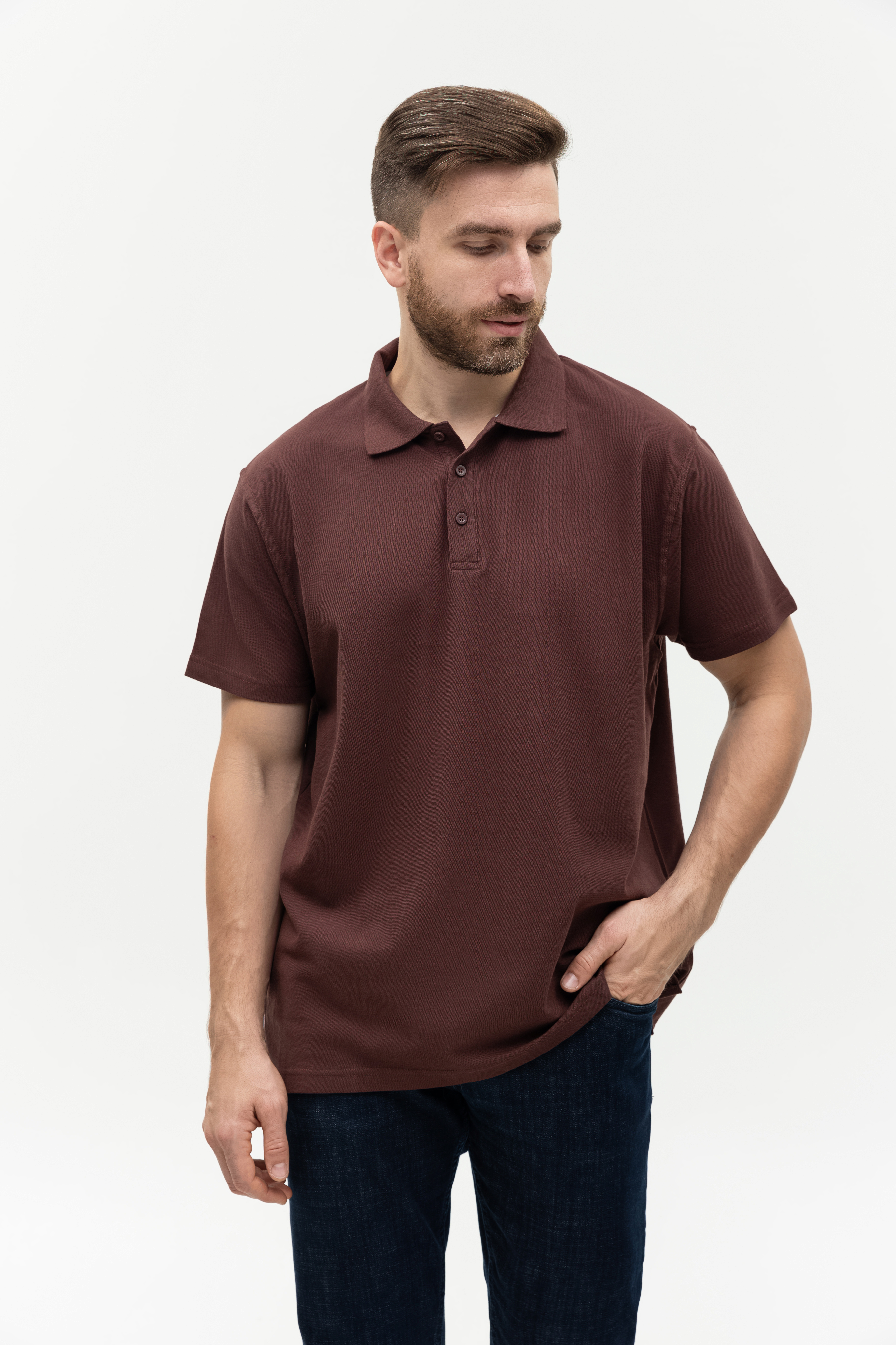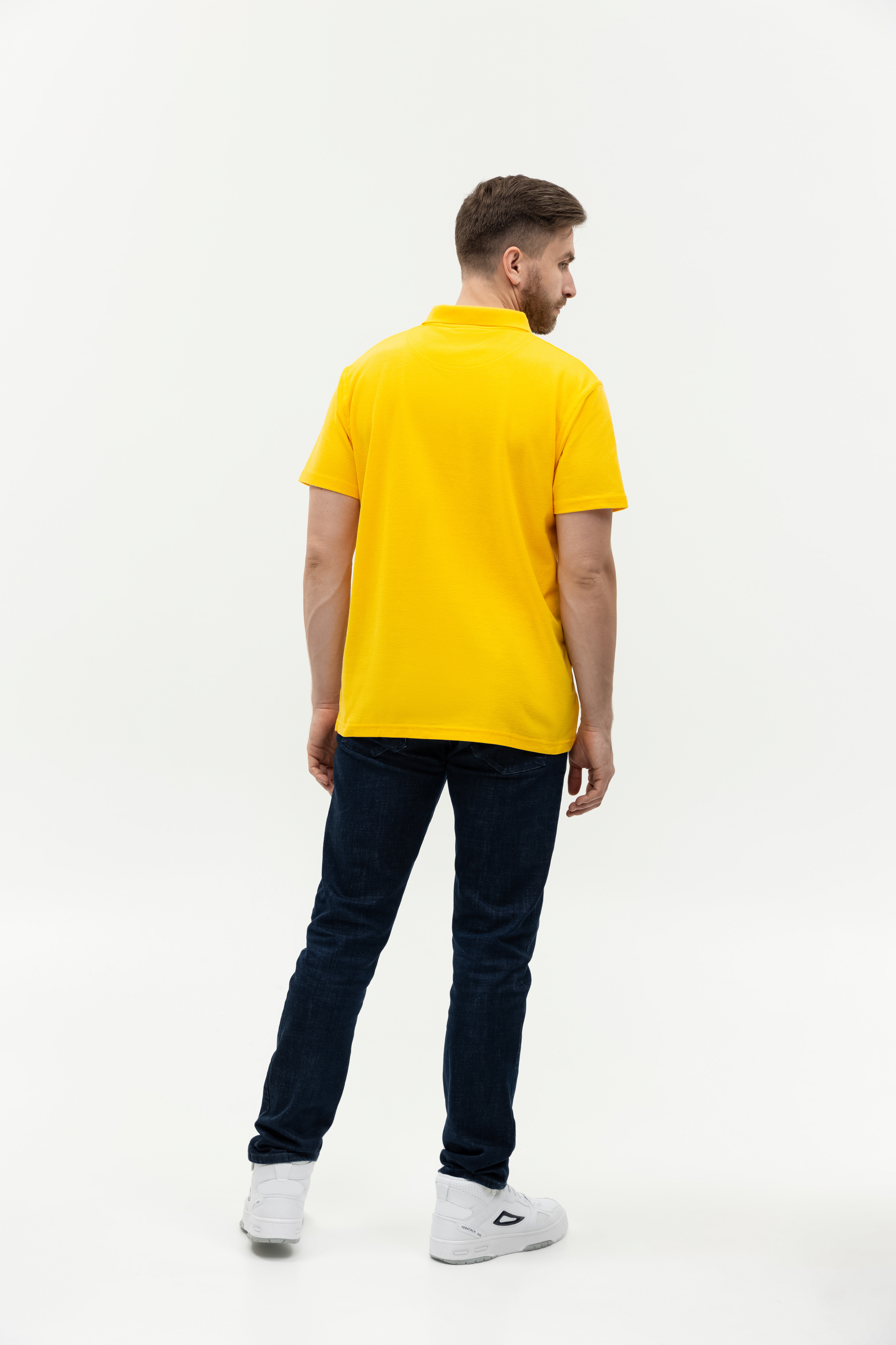 Поло выполнено из фактурной смесового ткани (65% хлопок, 35% полиэстер), благодаря чему изделие хорошо пропускает воздух и практически не мнется.