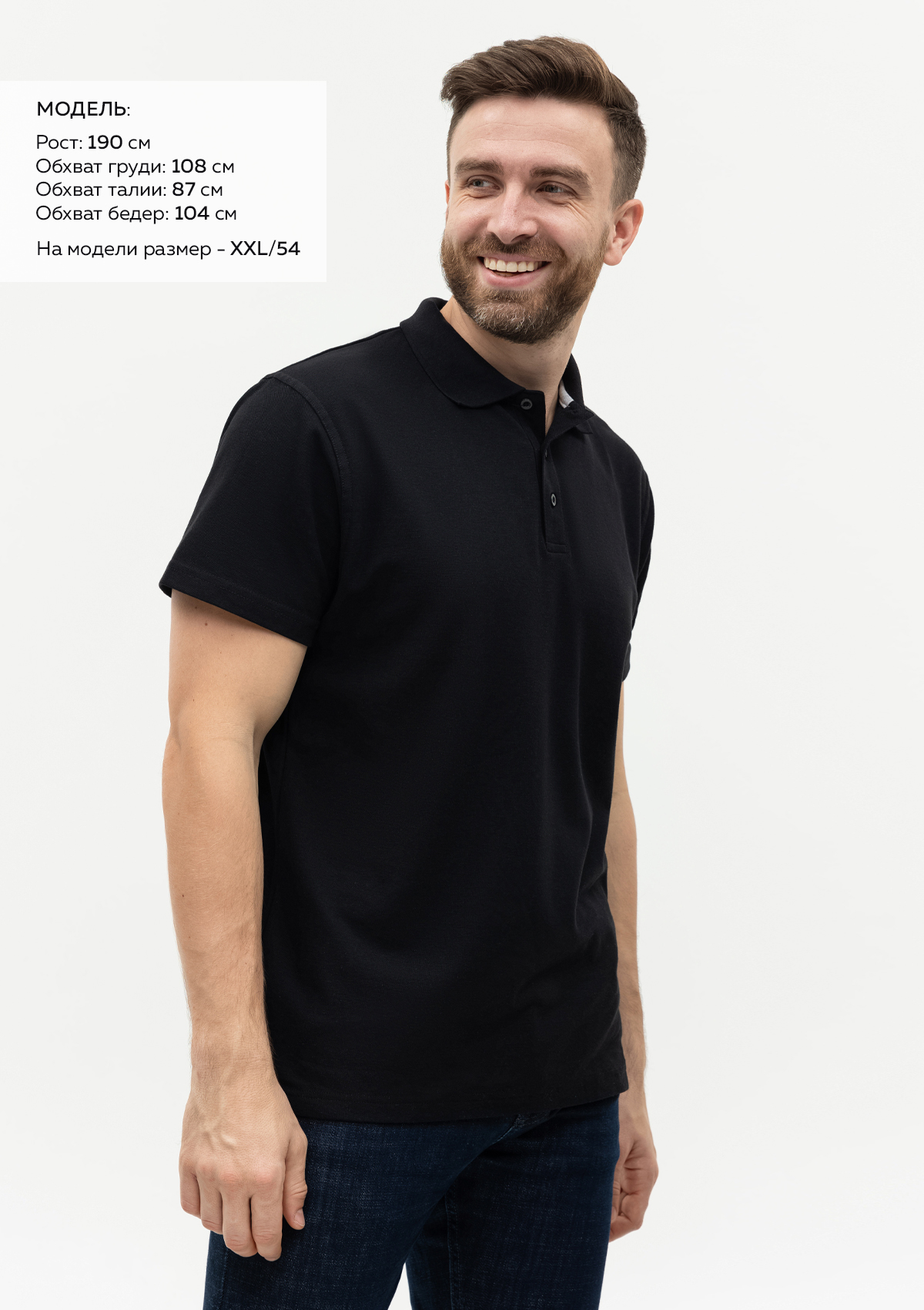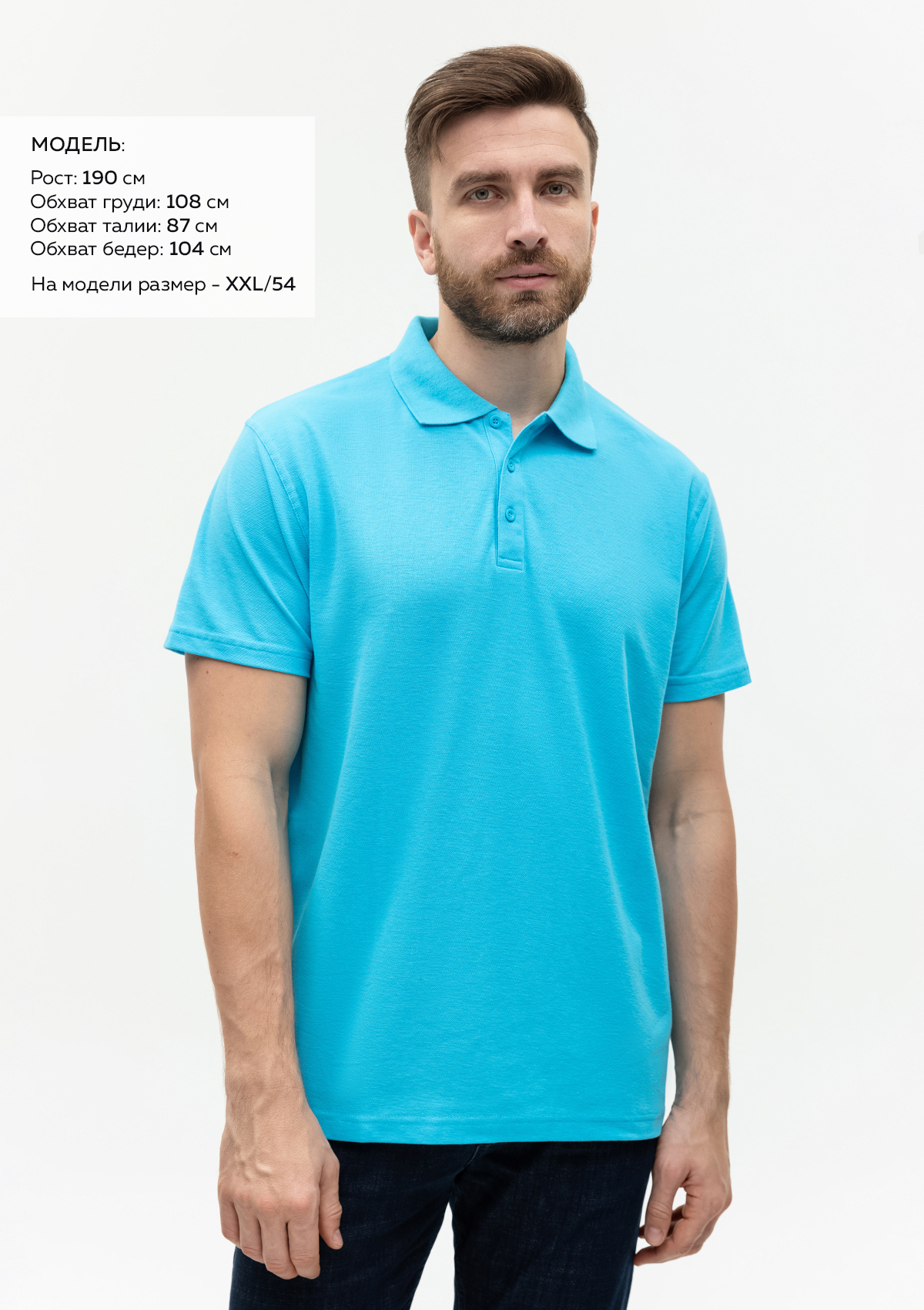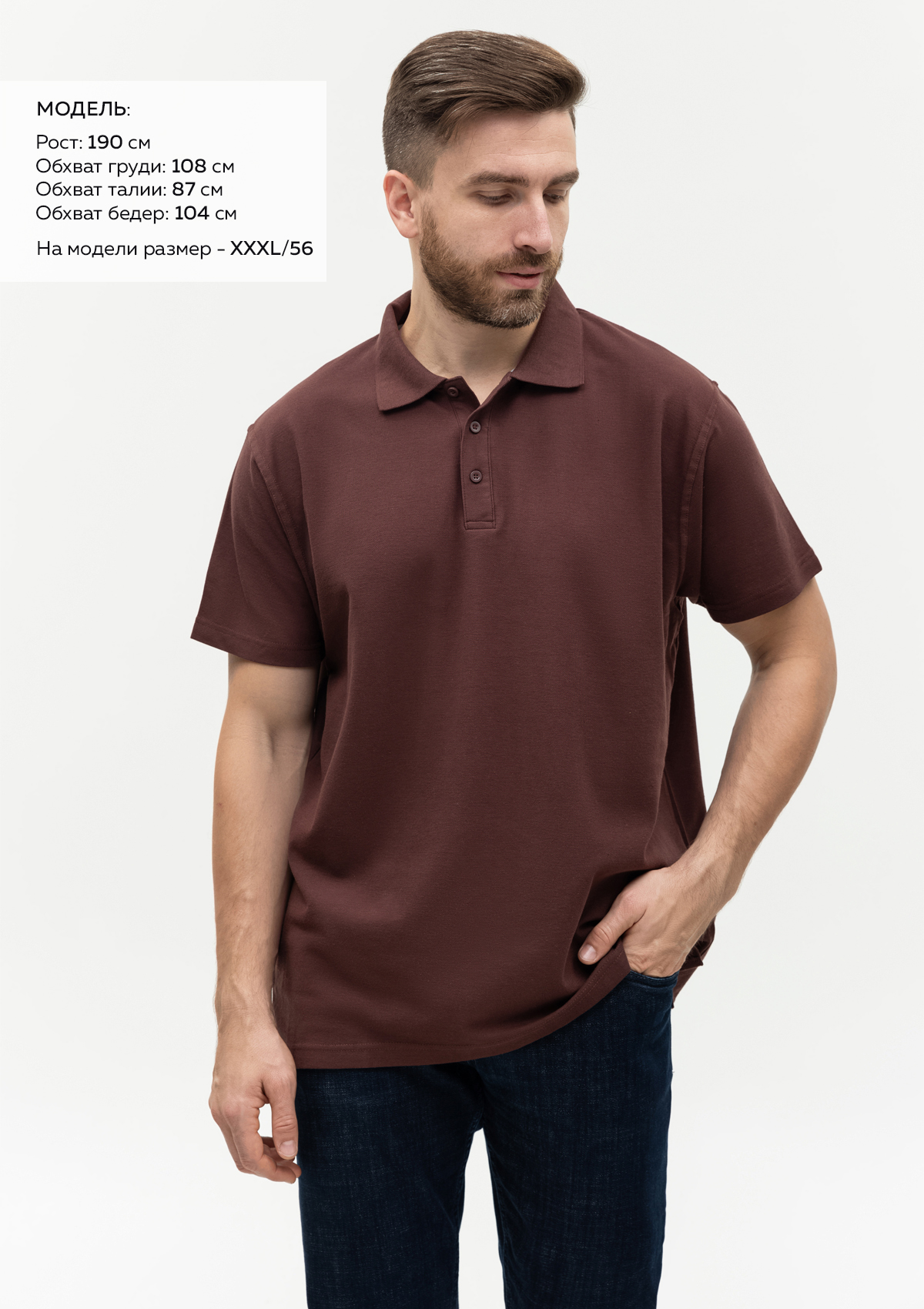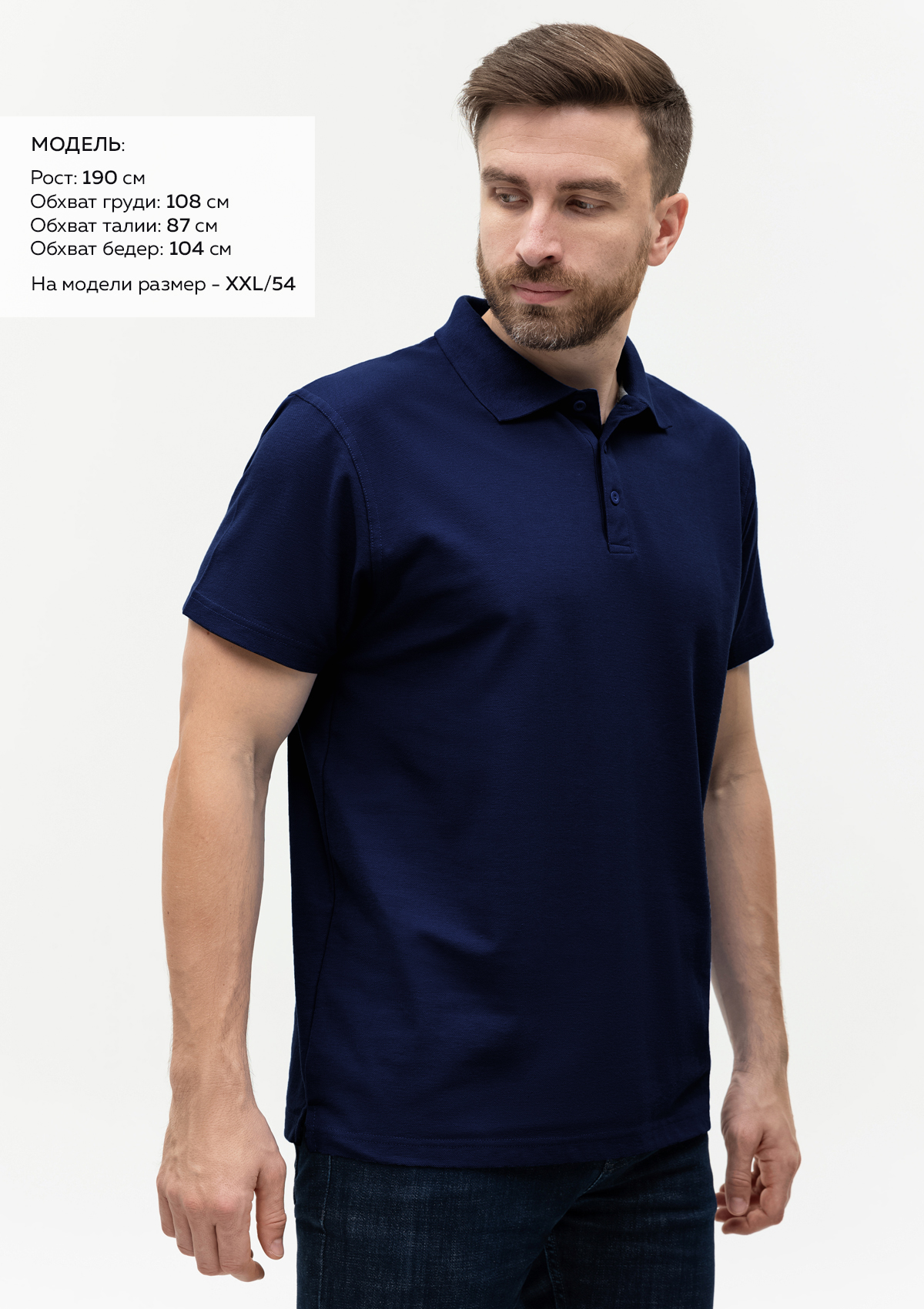 Размер на модели: XXL/54. Параметры модели: рост 190 см.; обхват груди 108 см.; обхват талии 87 см.; обхват бедер 104 см.