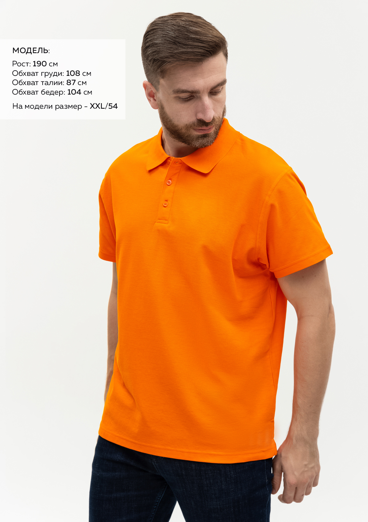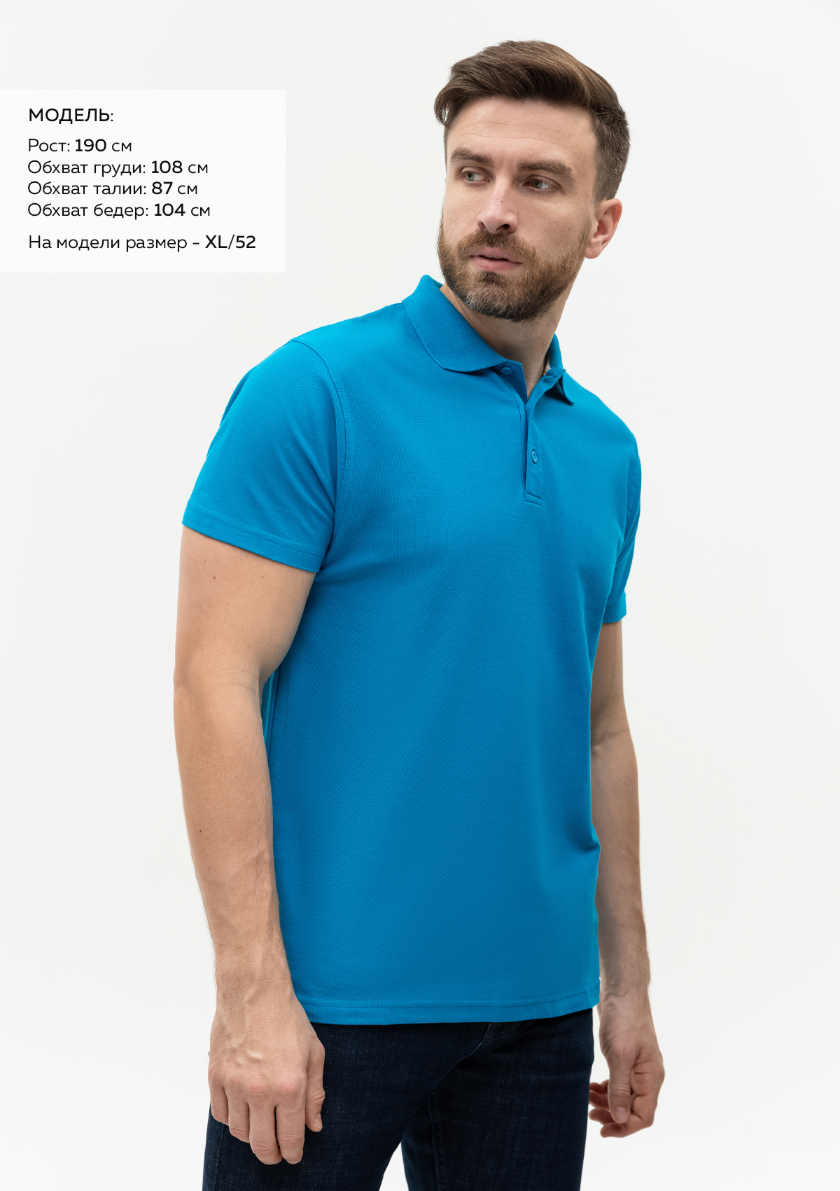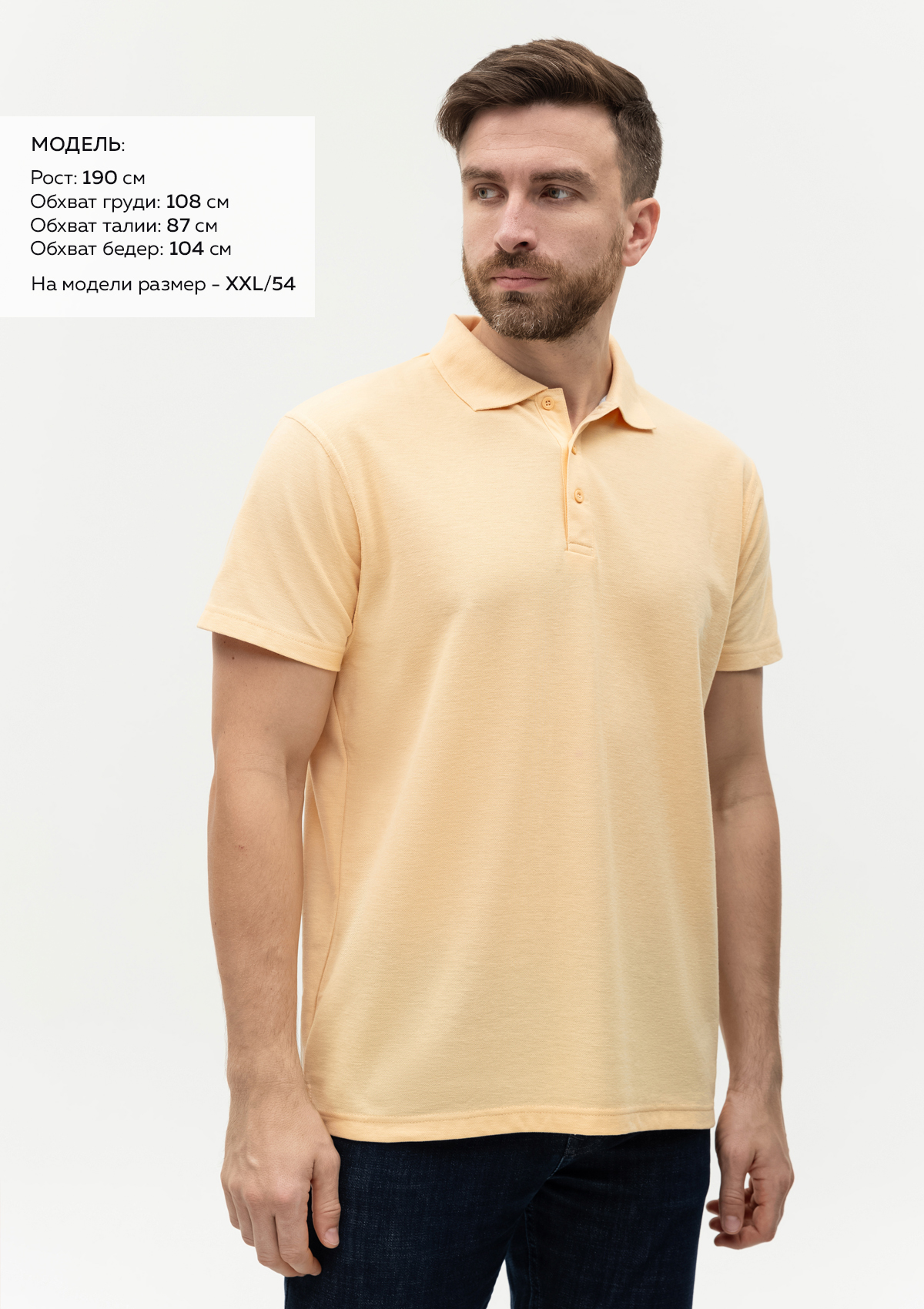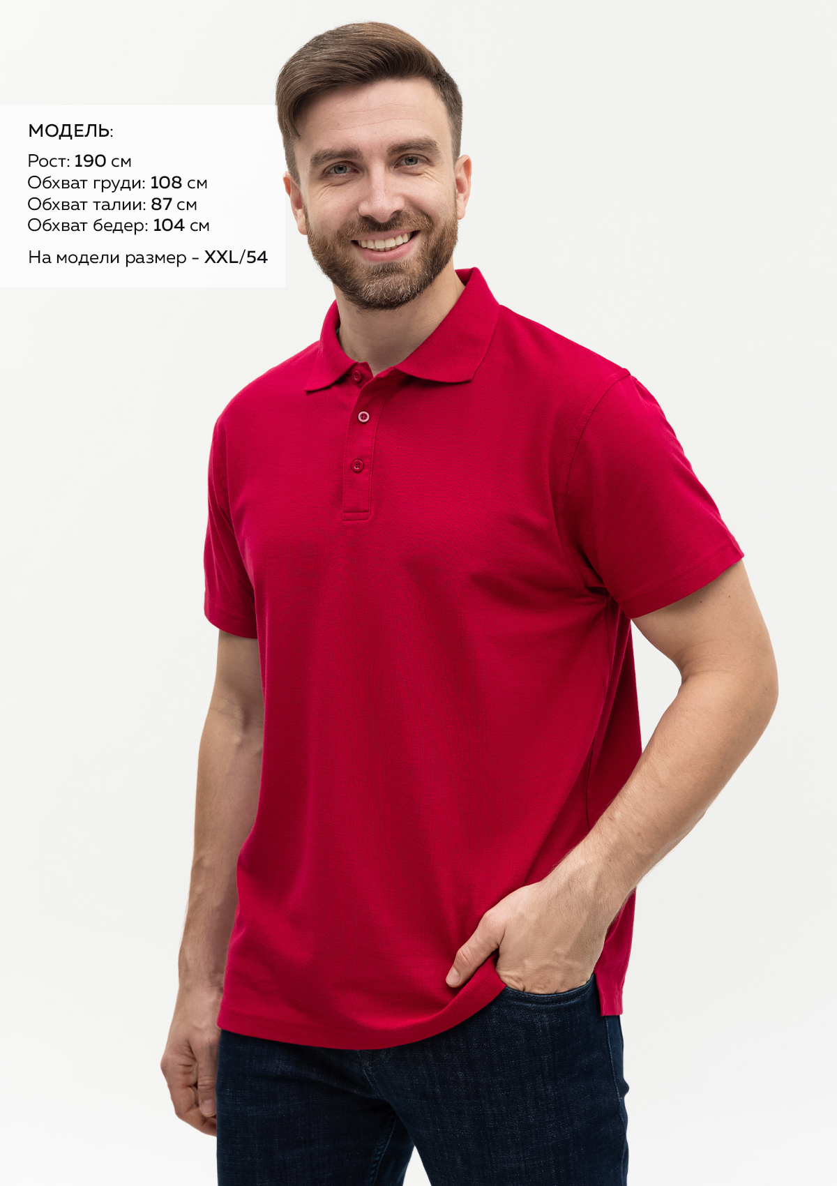 Размер на модели: XXL/54. Параметры модели: рост 190 см.; обхват груди 108 см.; обхват талии 87 см.; обхват бедер 104 см.