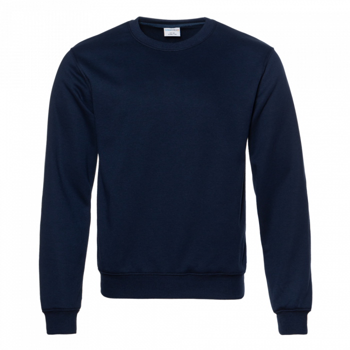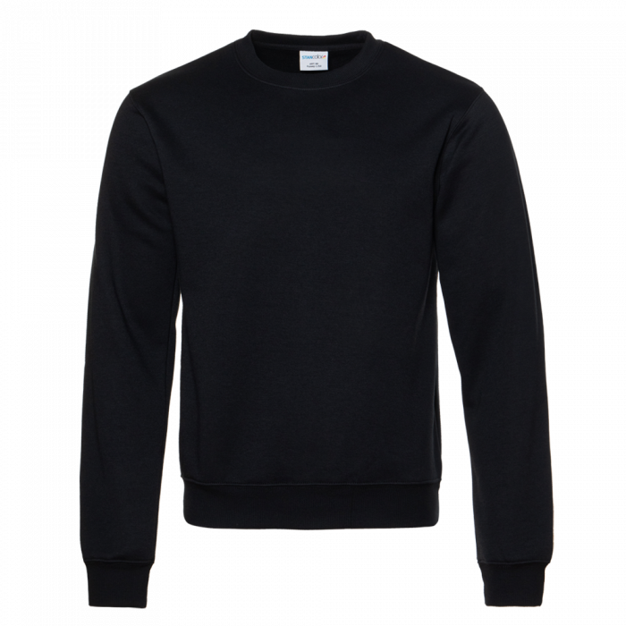 Классический свитшот прямого силуэта с округлым воротом и втачным рукавом. Ворот, манжет и низ изделия выполнены широкой эластичной резинкой.