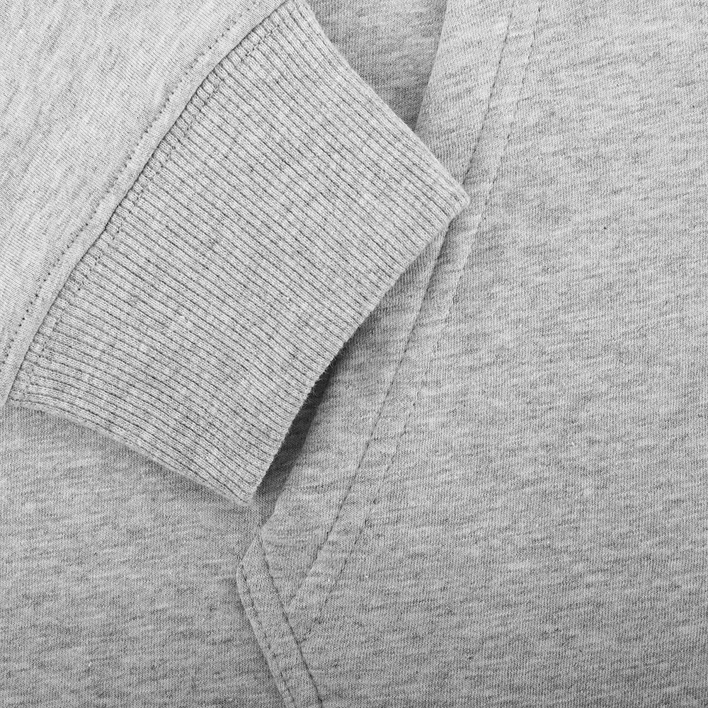 Толстовка изготовлена из двустороннего полотна «сэндвич», где верхний слой — 100% хлопок, а внутренний — мягкий флис из 100% полиэстера. Это сочетание обеспечивает отличную теплоизоляцию и комфорт, что делает изделие особенно привлекательным в холодное время года.