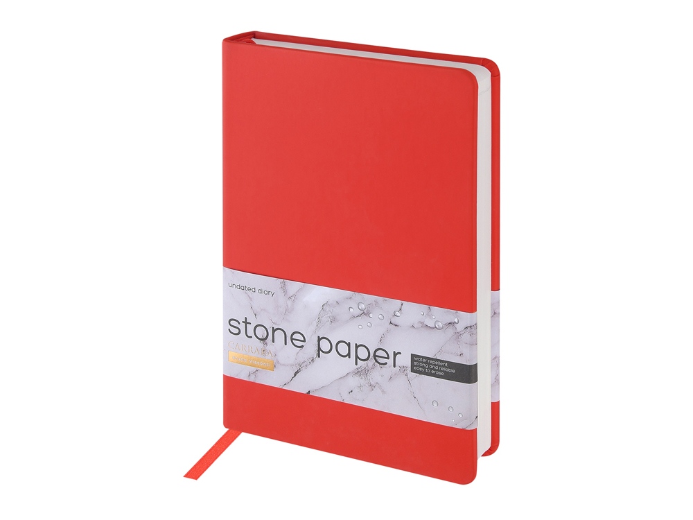Уникальность недатированного ежедневника Carrara от Bruno Visconti — в его блоке. Он изготовлен из каменной бумаги плотностью 144 г/кв.м, отличающейся особой гладкостью и повышенной прочностью. Она не боится воды и пролитого кофе, достаточно просто протереть сухой салфеткой.