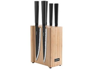 Ножи: высококачественная нержавеющая сталь, покрытие софт-тач. Блок: пластик, полипропиленовые волокна