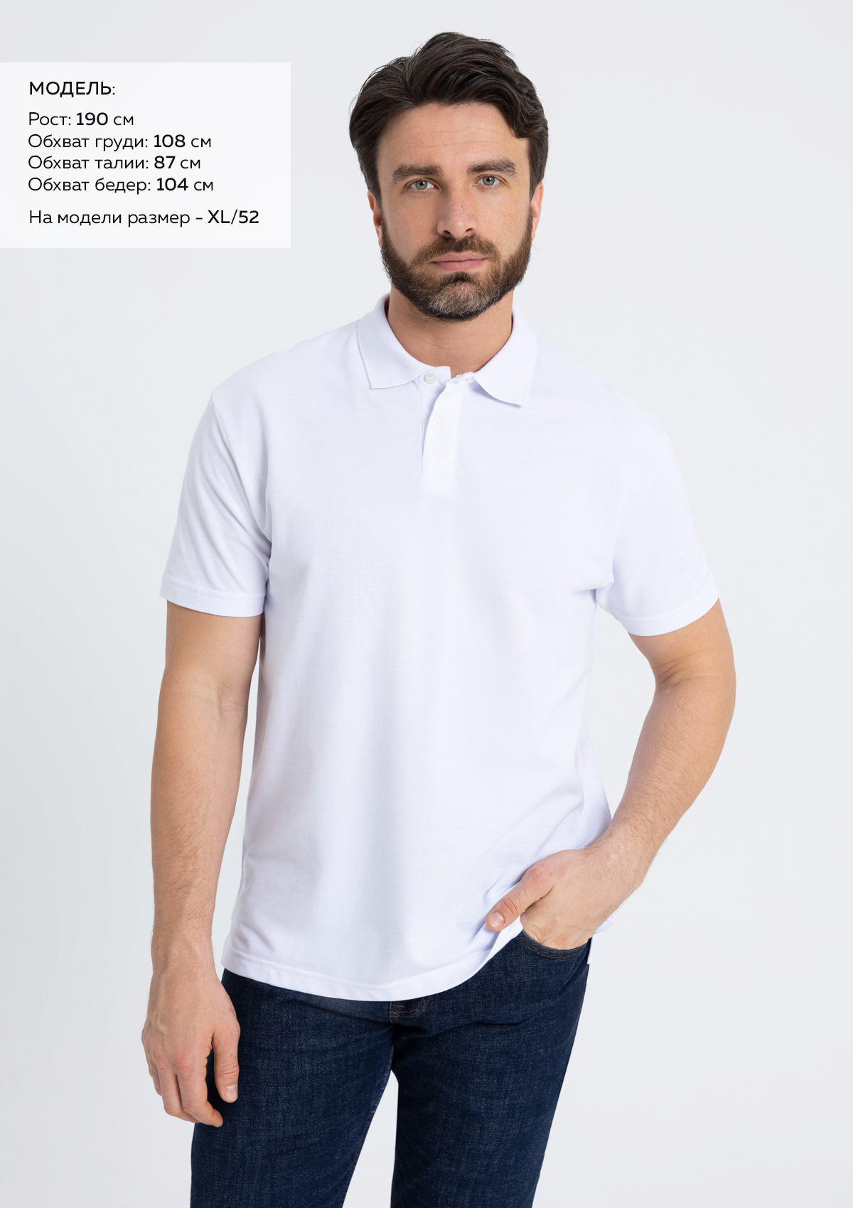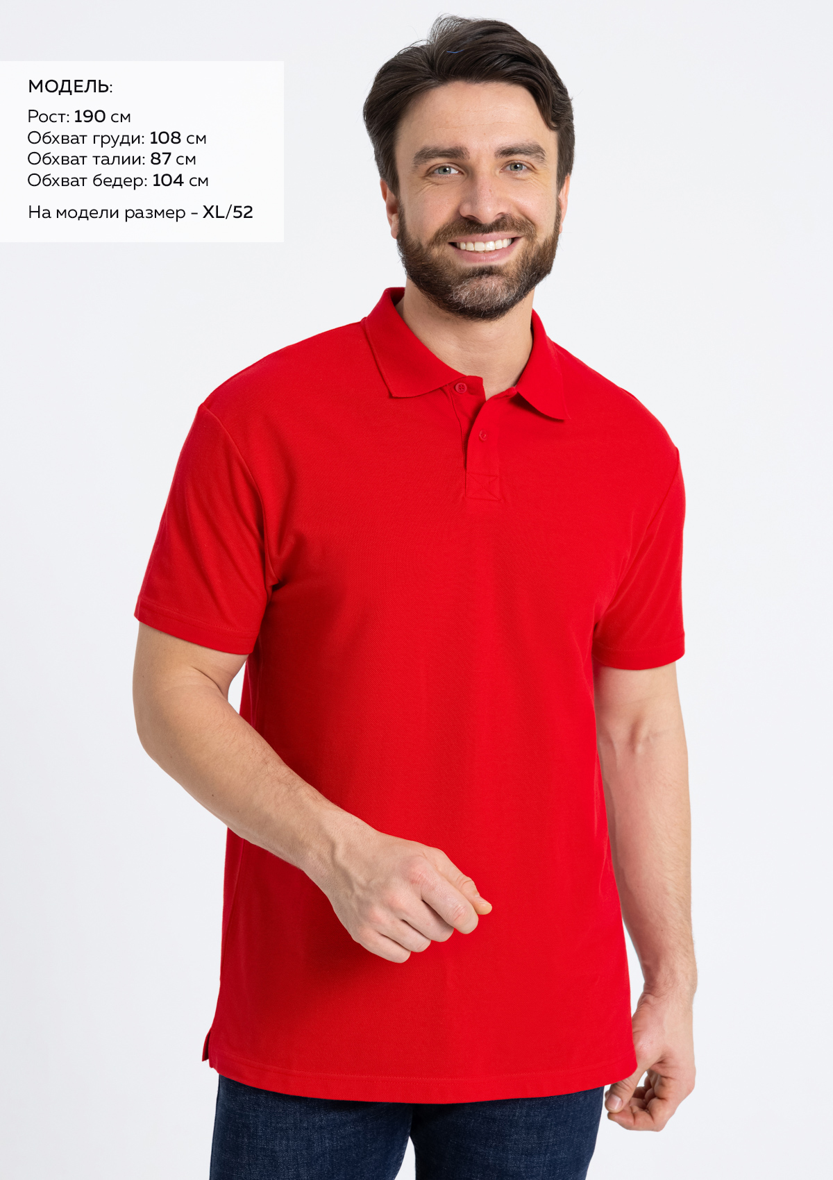 Размер на модели: XL/52. Параметры модели: рост 190 см.; обхват груди 108 см.; обхват талии 87 см.; обхват бедер 104 см.