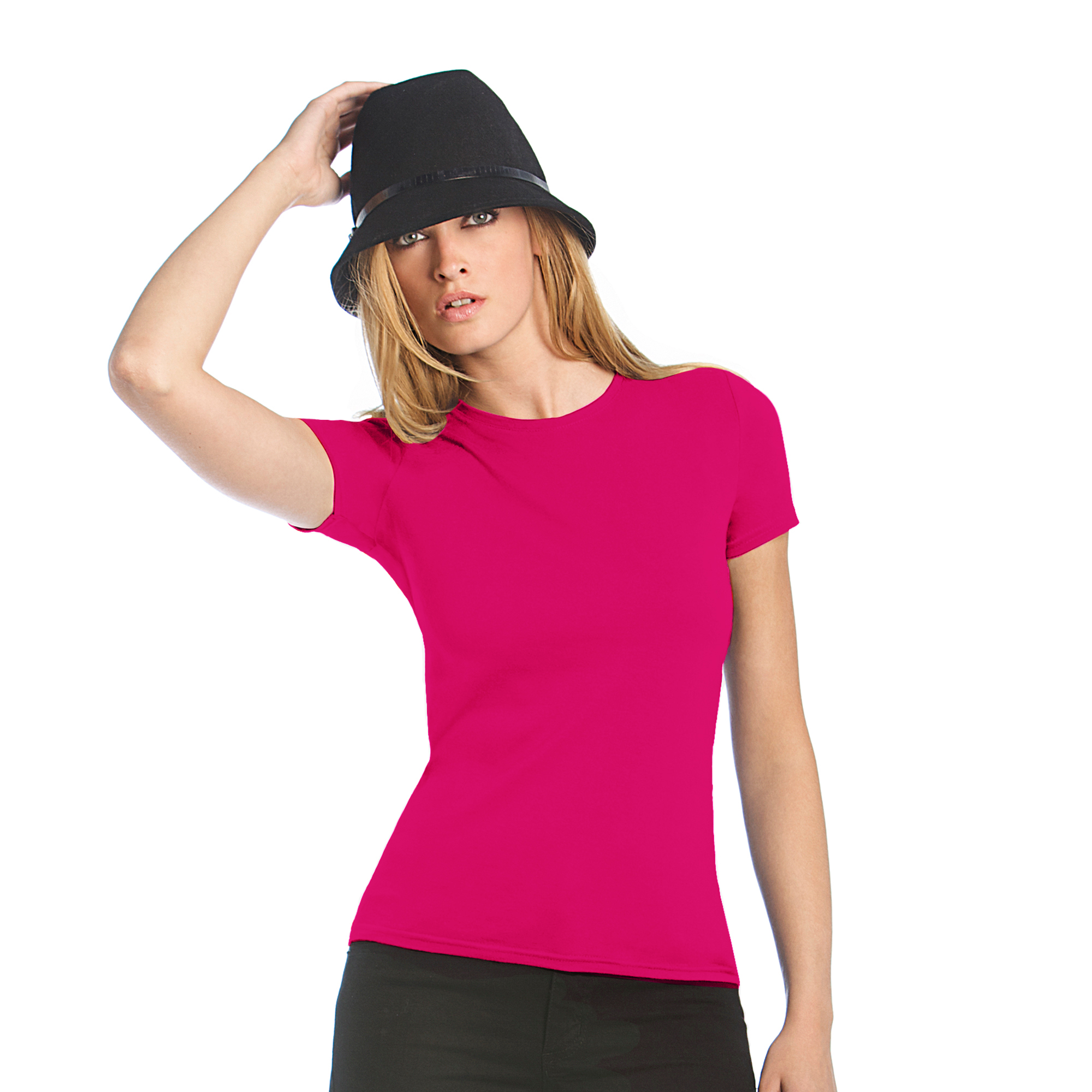 Футболка женская, приталенная, с боковыми швами, плотностью 145 г/кв.м.; тонкая линия воротника.