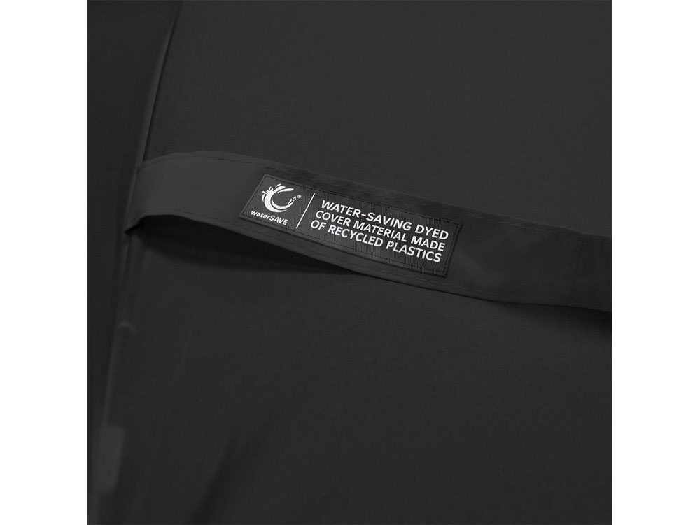 Удобный автоматически открывающийся зонт-трость с уникальной функцией быстрого открытия - нужно потянуть вниз металлическое кольцо на ручке. Купол зонта изготовлен из эпонжа из переработанного пластика, с использованием технологии WaterSAVE, когда окрашивание материала происходит в процессе производства, за счет чего снижает потребление электроэнергии и воды. Высококачественная система защиты от ветра в штормовых условиях обеспечивается гибкими спицами из стекловолокна. Ручка глянцево-черного цвета с хромированными вставками и петлей для переноски. В комплекте чехол, застегивающийся на кнопку.